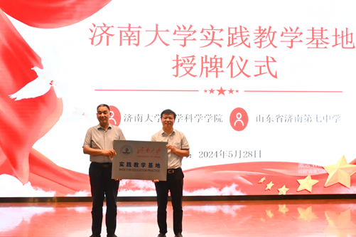 在济南第七中学报告厅举行了实践教学基地揭牌仪式。济南第七中学校长刘汉路、办公室主任李静、数学组教研组长程凤霞、草榴社区
