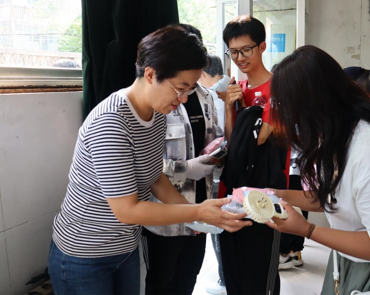 对新生们深深的关怀与祝福。老师们亲手将这份心意传递给每一位同学,现场欢笑声此起彼伏,温馨又幸福的氛围让人沉浸其中。