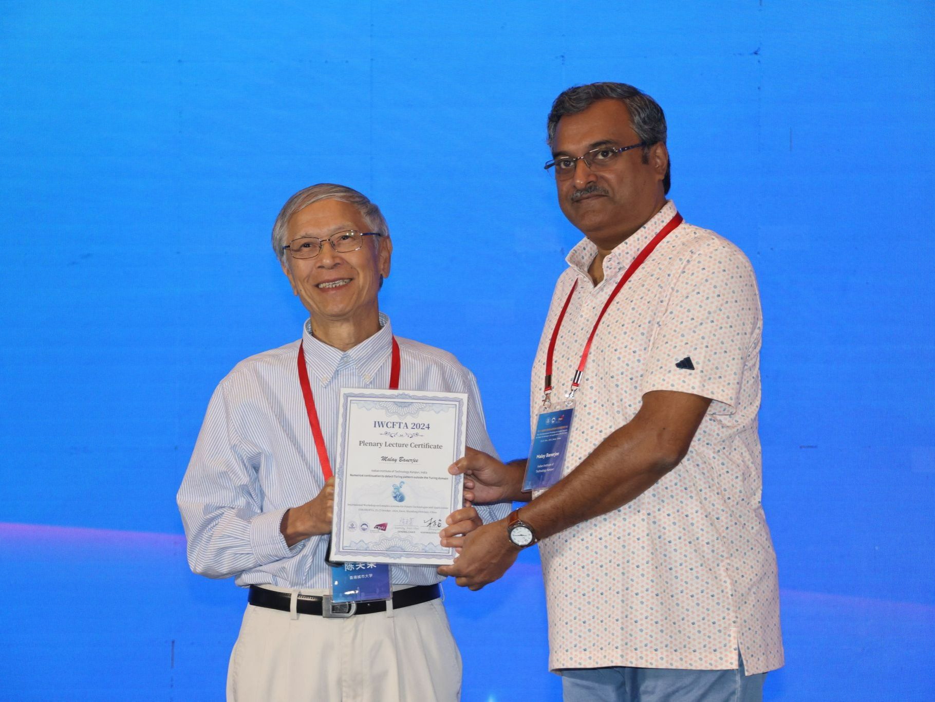 马来•班纳吉(Malay Banerjee)教授作题为“图灵域外检测图灵模式的数值延拓(Numerical continuation to detect Turing pattern outside the Turing domain)”的报告;中国香港城市大学协理副校长谢智刚教授以“面向更绿色未来的演变电网(The evolving power grid towards a greener future)”为题讨论了电力电子系统渗透到电网中的各种电路和系统问题及对电网持续演变的影响;加拿大滑铁卢大学刘新芝教授分享了在领导者—跟随者时滞多智能体系统的共识混合协议时间延迟方面的观点;北京航空航天大学副校长吕金虎教授通过线上的形式与大家讨论群体智能感知和协同控制的新进展相关的问题;西南大学的王丽丹教授作题为“类脑计算与智能控制(In-memory computing memristor device and its AI accelerators)”的报告;电子科技大学卢多维科·米纳蒂(Ludovico Minati)教授作题为“跨越神经元与硅:关于异常电子电路与神经科学之间关系的一些思考(Across neurons and silicon: some ideas about the relationship between unusual electronic circuits and neuroscience)”的报告;广东工业大学的禹思敏教授与大家共同探讨了混沌密码的分析与设计问题。