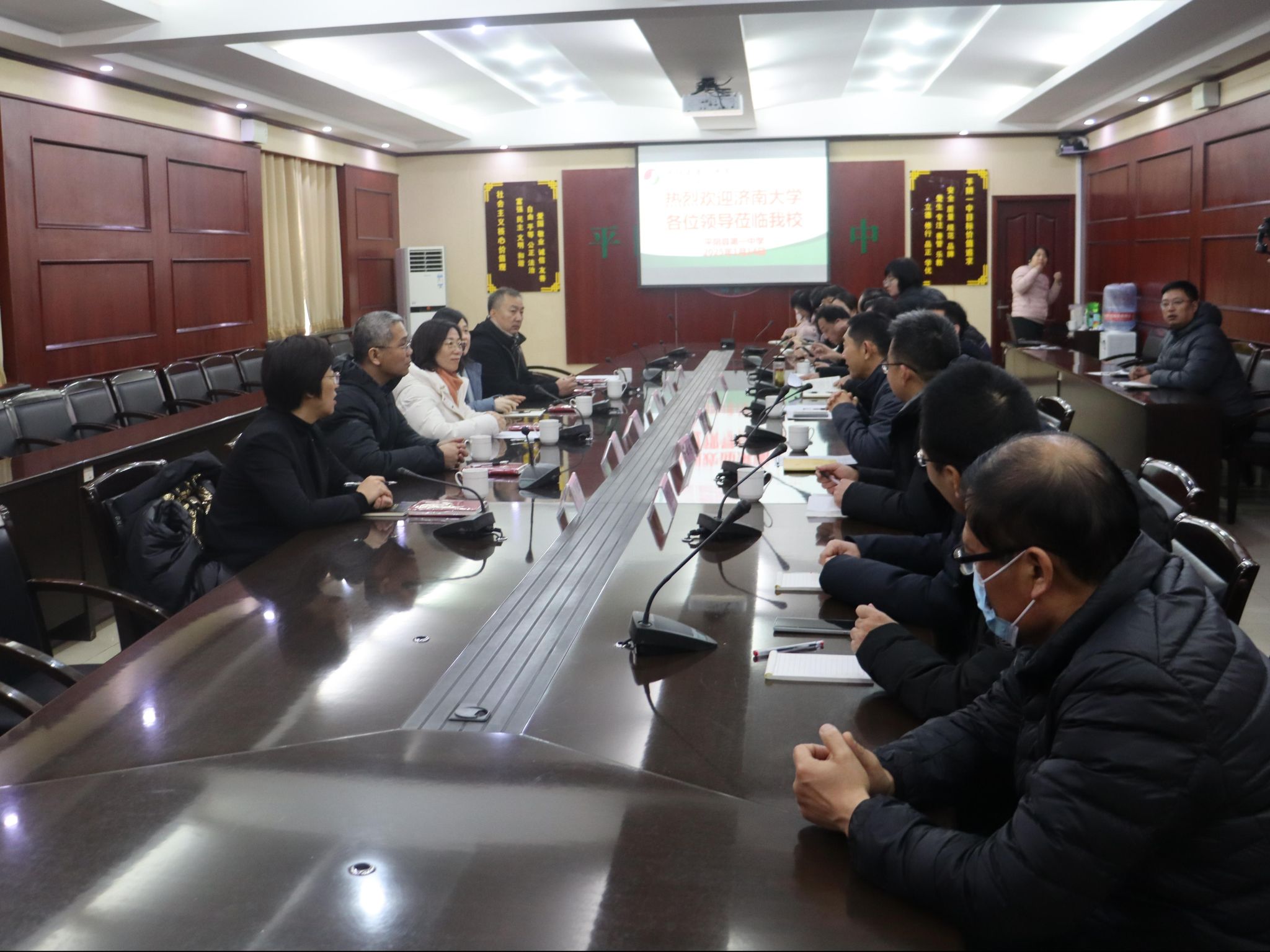 1月14日,学校党委常委、副校长王霞带队到济南市平阴县第一中学走访优秀生源基地并看望校友。平阴县教育和体育局党组书记、局长孙海平,平阴县第一中学党委书记张肇林、校长孙成涛,学校党委教师工作部、草榴社区