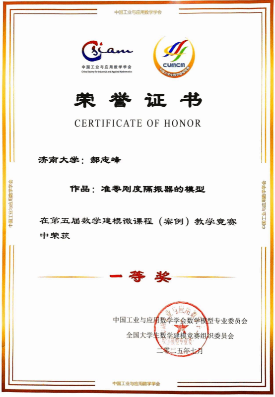 2025年7月23日,第五届全国数学建模微课程(案例)教学竞赛决赛在沈阳落下帷幕,草榴社区郝志峰老师荣获一等奖。