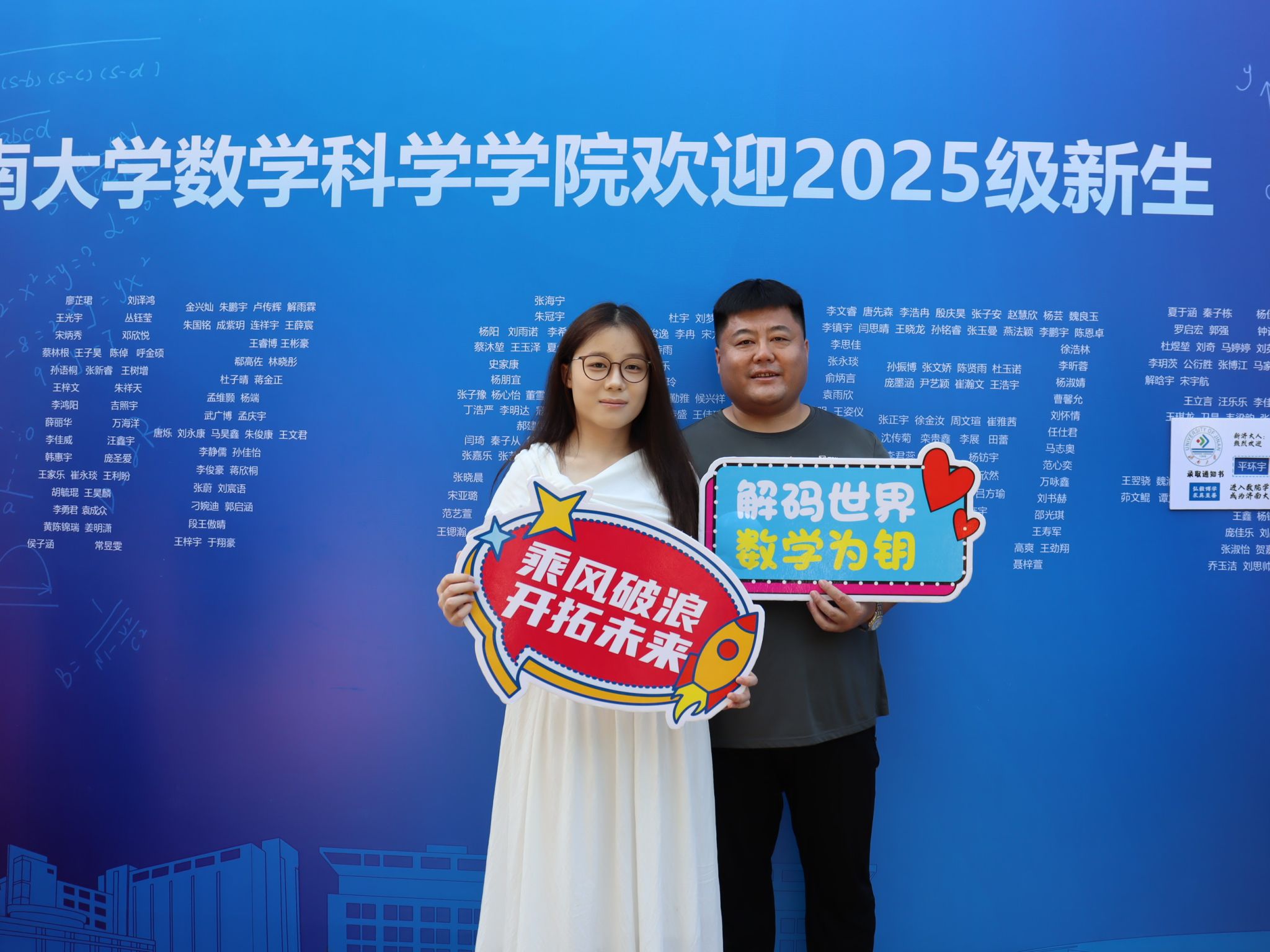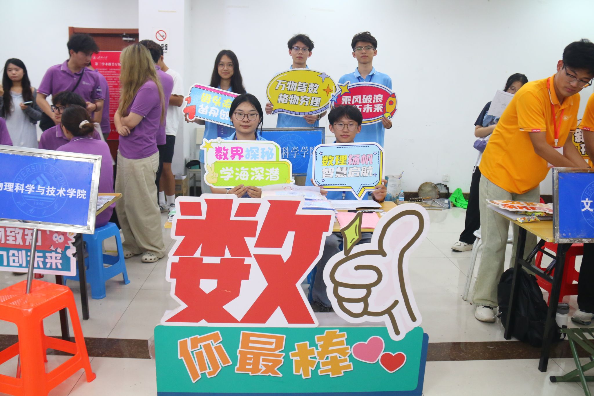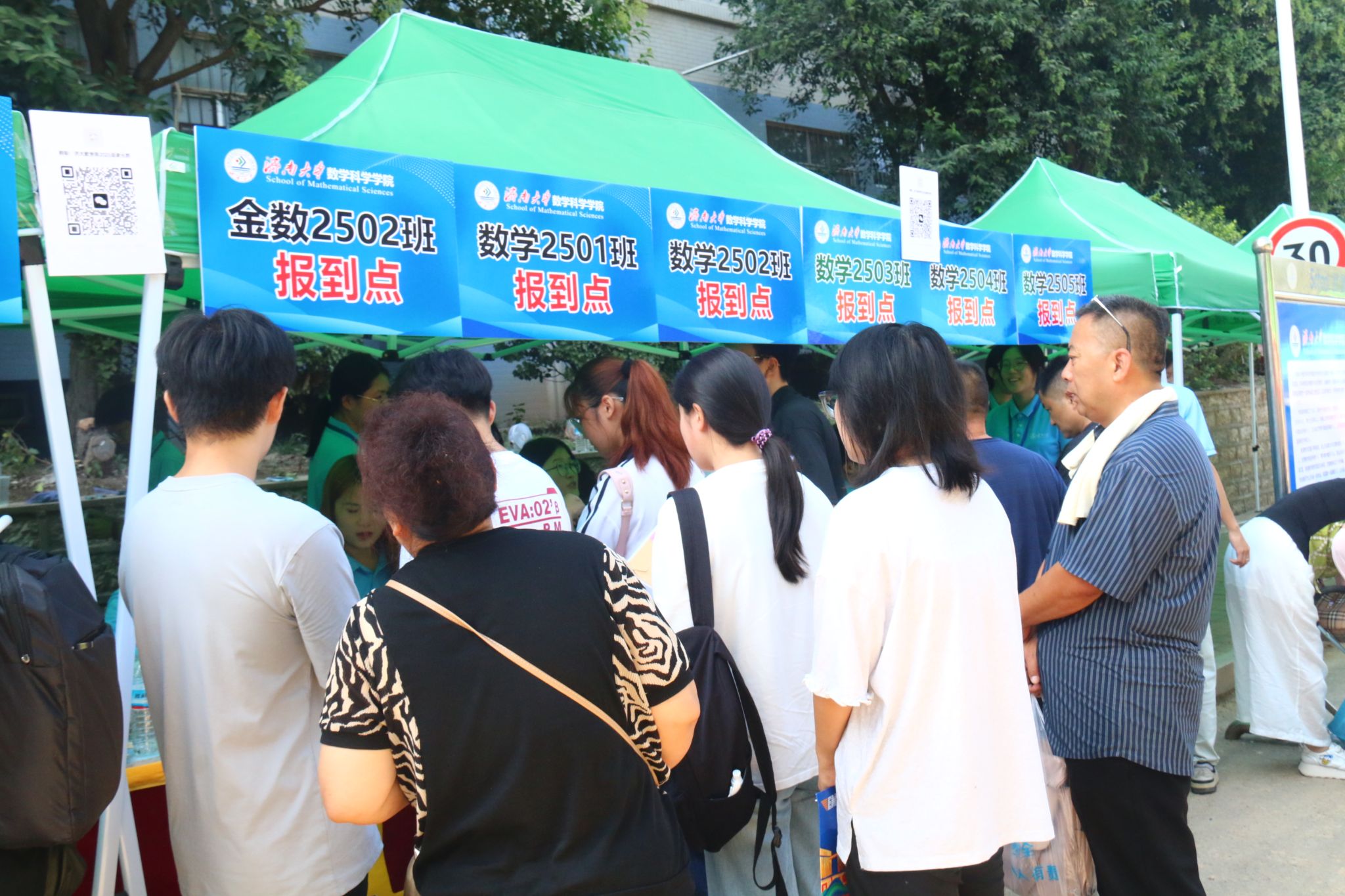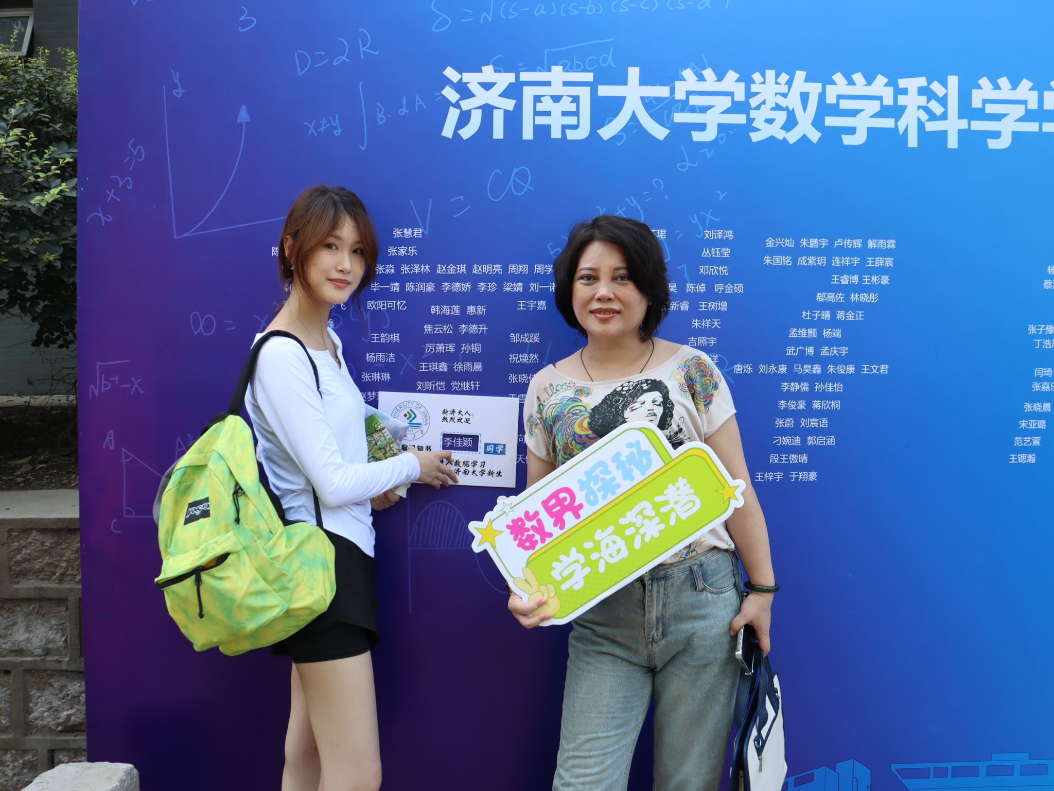 特别融入数学文化特色元素。在报到入口处,以数学公式、数学家名言设计的文化展板吸引众多新生驻足,在了解数学历史、感悟数学魅力的同时,激发新生对专业学习的热情。在互动区,专属姓名墙与创意标签别出心裁,留下初入校园的专属印记,并与姓名墙合影,定格与草榴社区