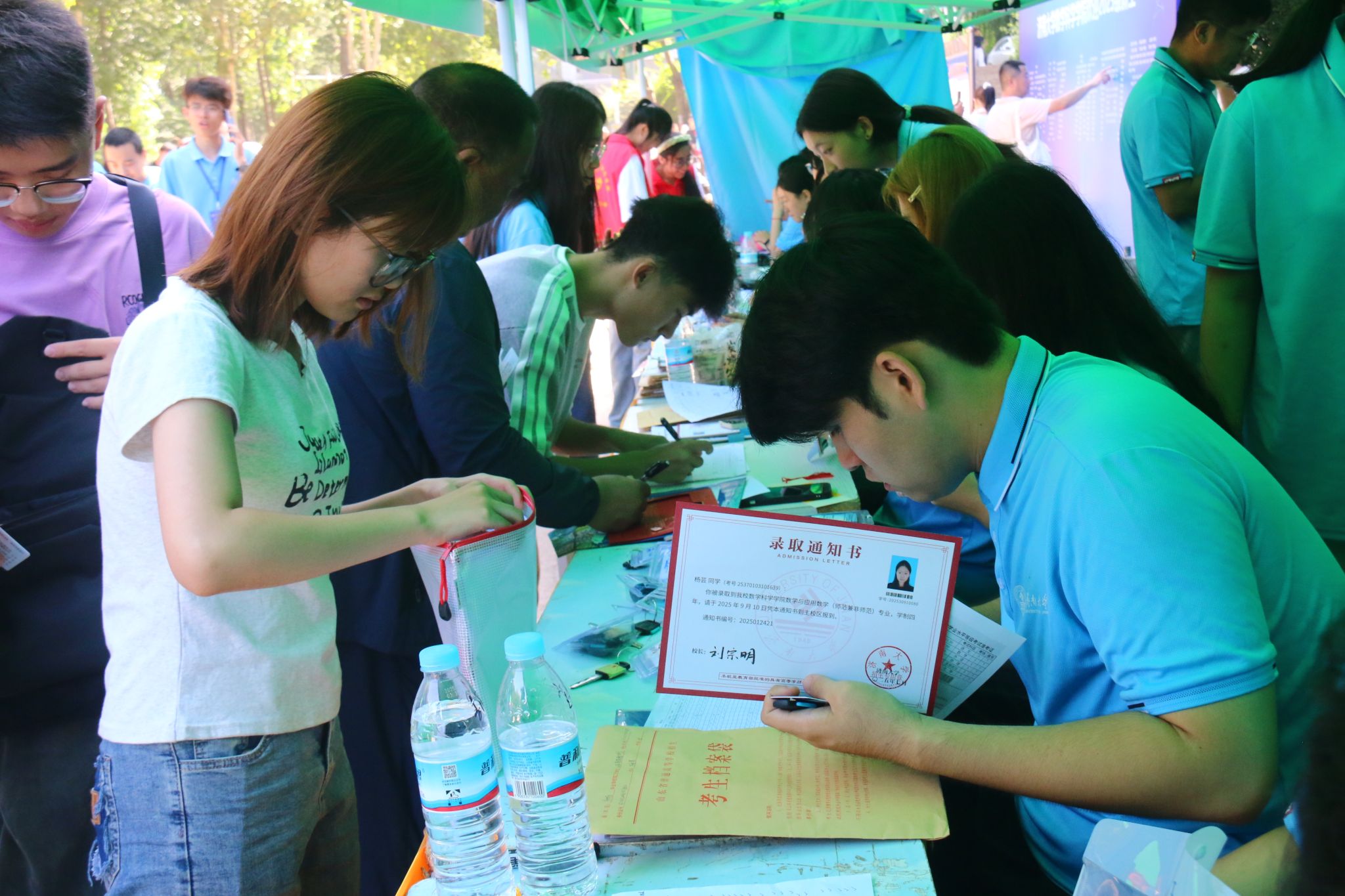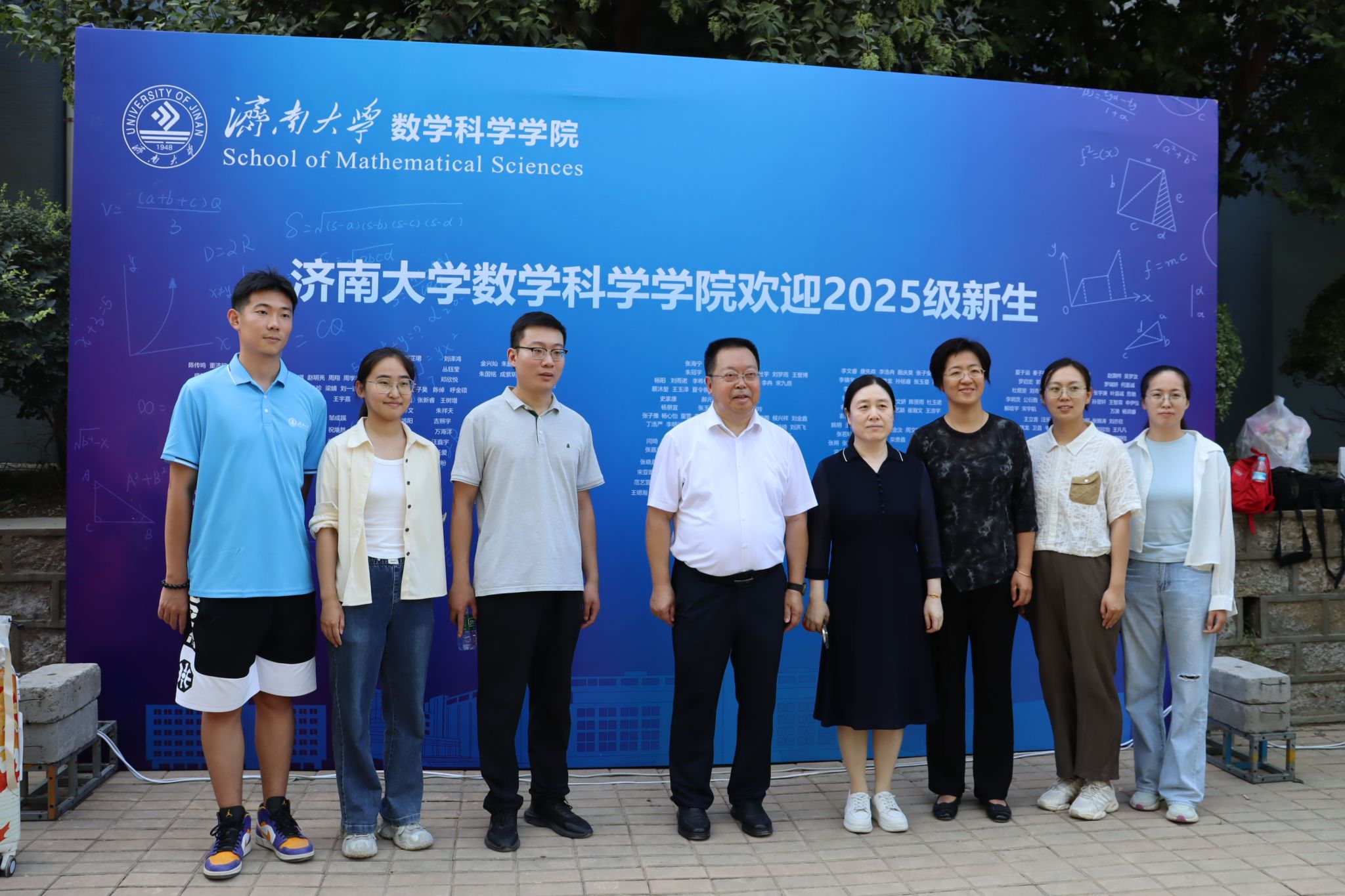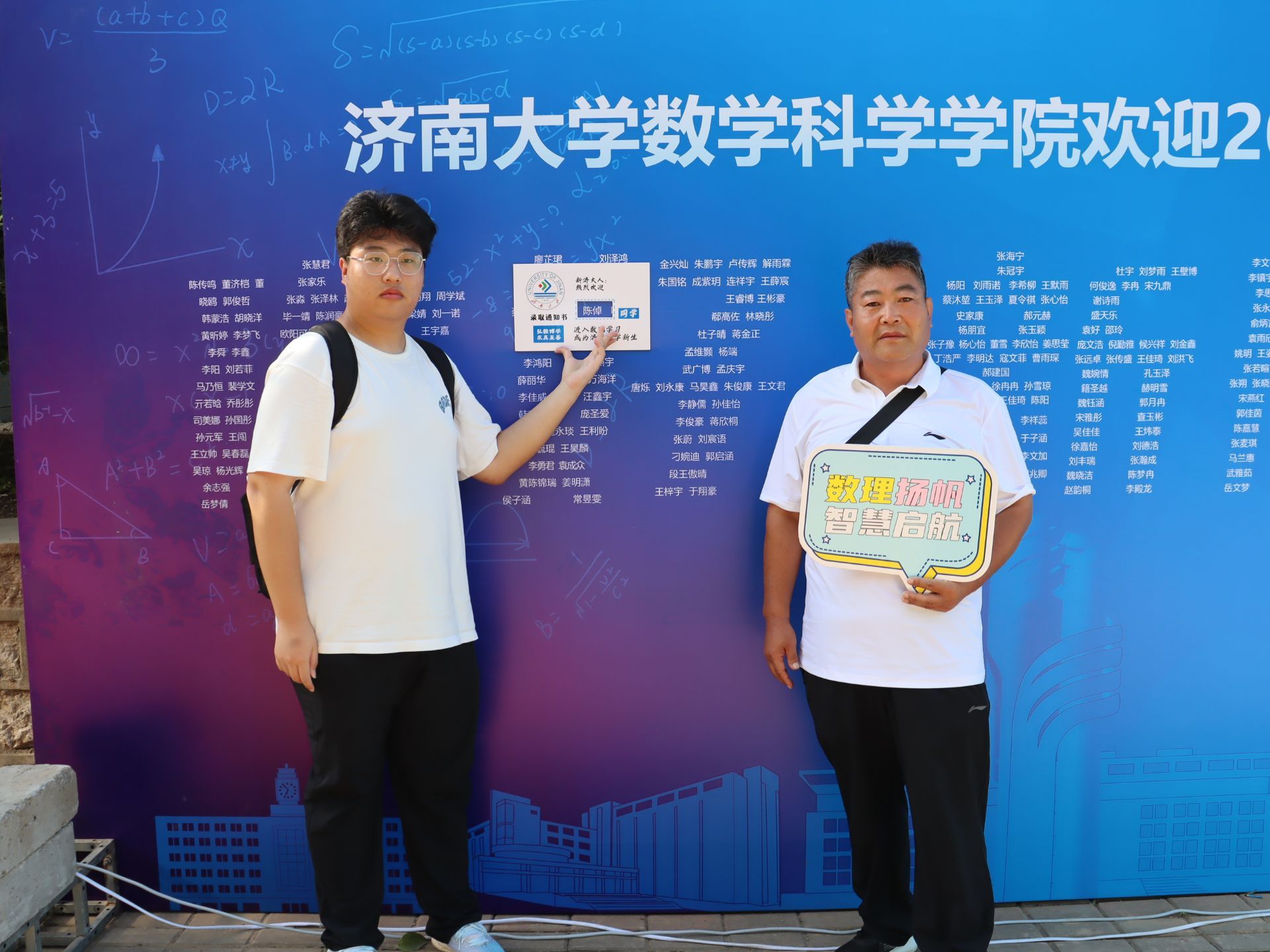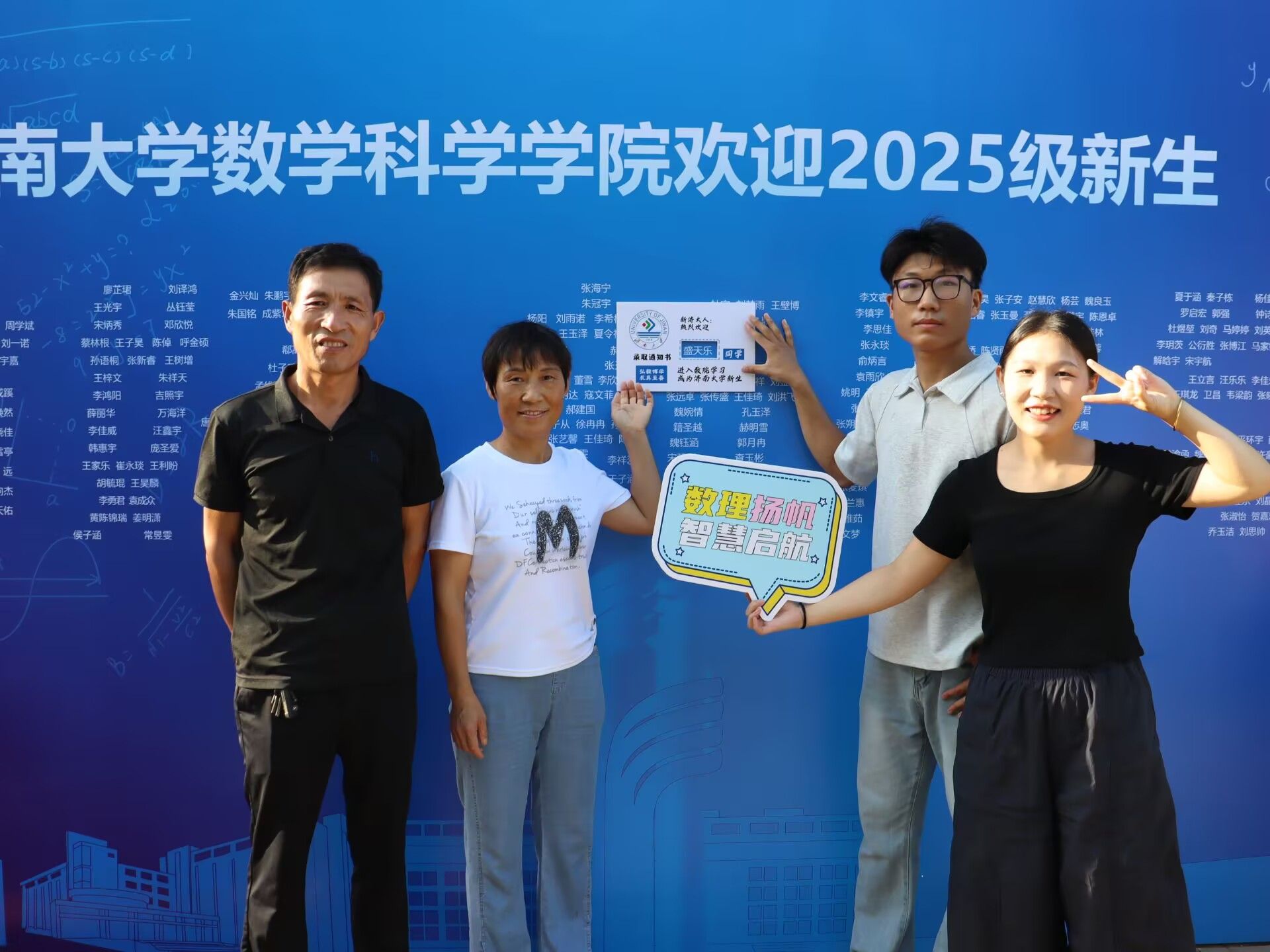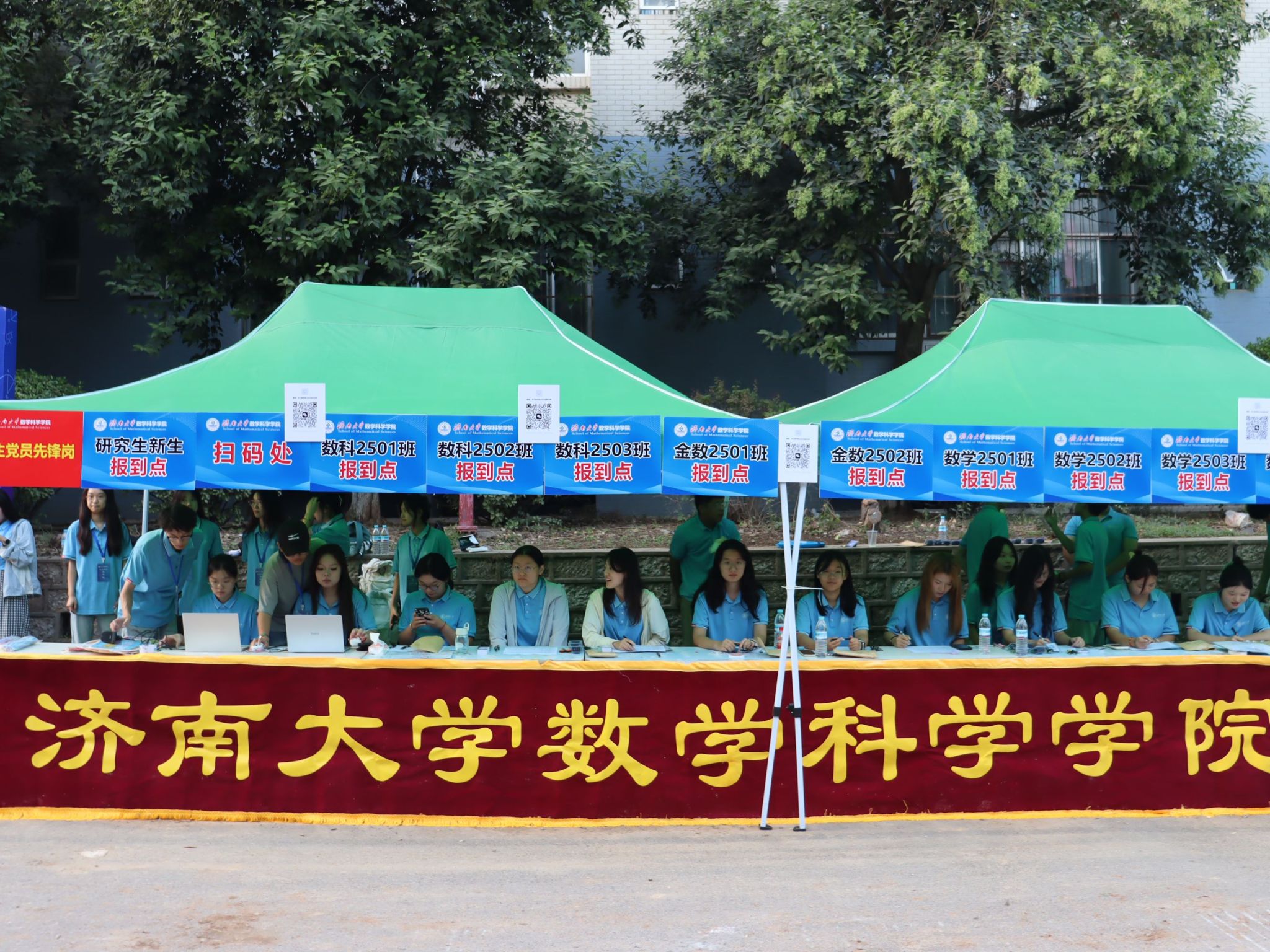 特别融入数学文化特色元素。在报到入口处,以数学公式、数学家名言设计的文化展板吸引众多新生驻足,在了解数学历史、感悟数学魅力的同时,激发新生对专业学习的热情。在互动区,专属姓名墙与创意标签别出心裁,留下初入校园的专属印记,并与姓名墙合影,定格与草榴社区