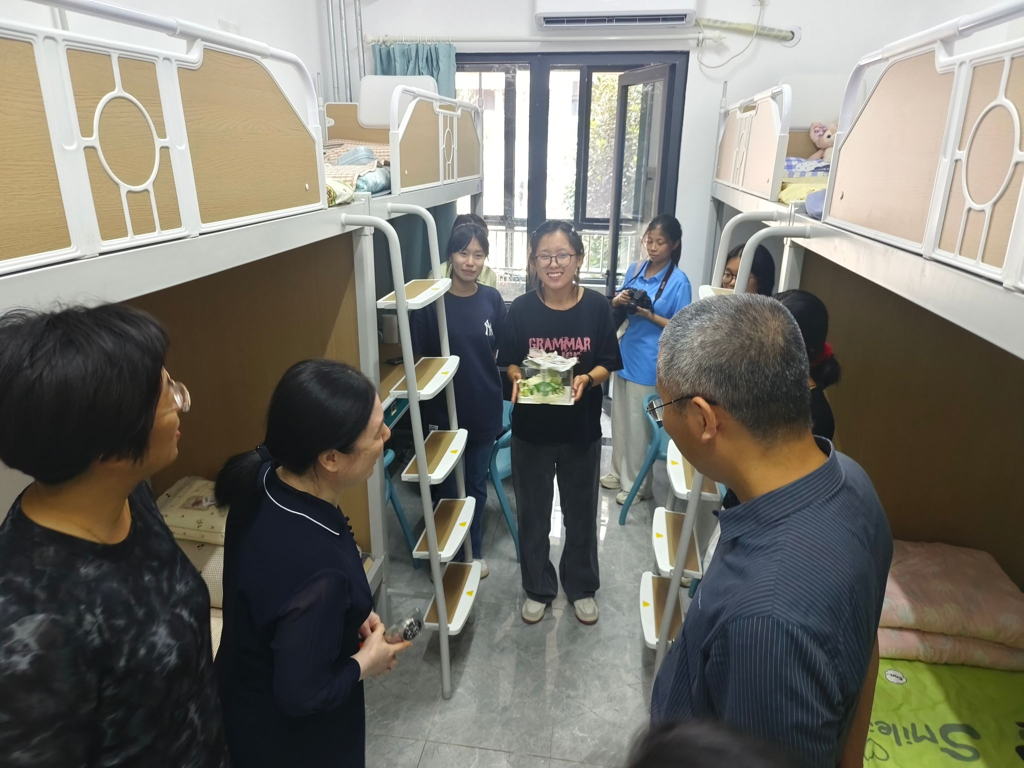 党委副书记、副院长张沂红及新生班主任,辅导员等亲临现场,与新生及家长亲切交谈,答疑解惑。在新生宿舍,领导和老师们仔细查看居住环境,关心新生生活需求。大一新生常明佳在开学首日迎来了自己的生日,草榴社区