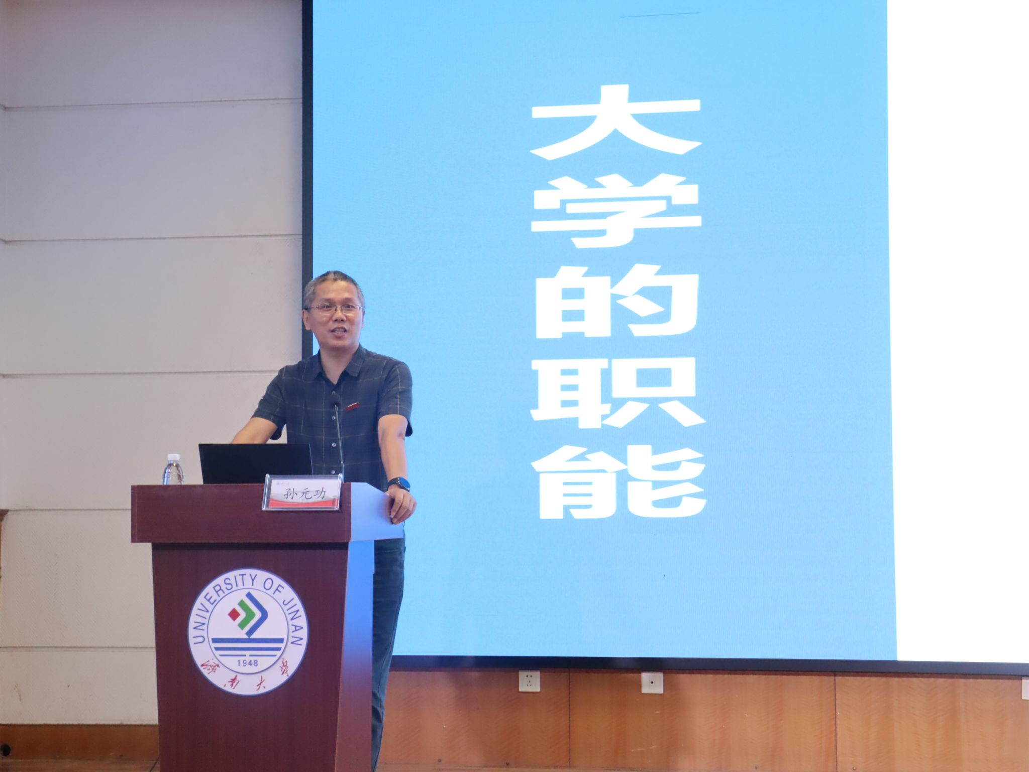 见面会后,草榴社区 院长孙元功为新生讲授“开学第一课”。孙元功以“大学”“学科”“专业”三个关键词为主线,介绍了学校的校史校情以及草榴社区 的历史沿革、学科建设、师资力量等,以生动的语言和翔实的数据带领新生了解济大,帮助新生树立正确的学业认知,并鼓励同学们能够勤奋学习、做好规划、保持定力,做一个勇于追求、乐于拼搏、有家国情怀的济大人。