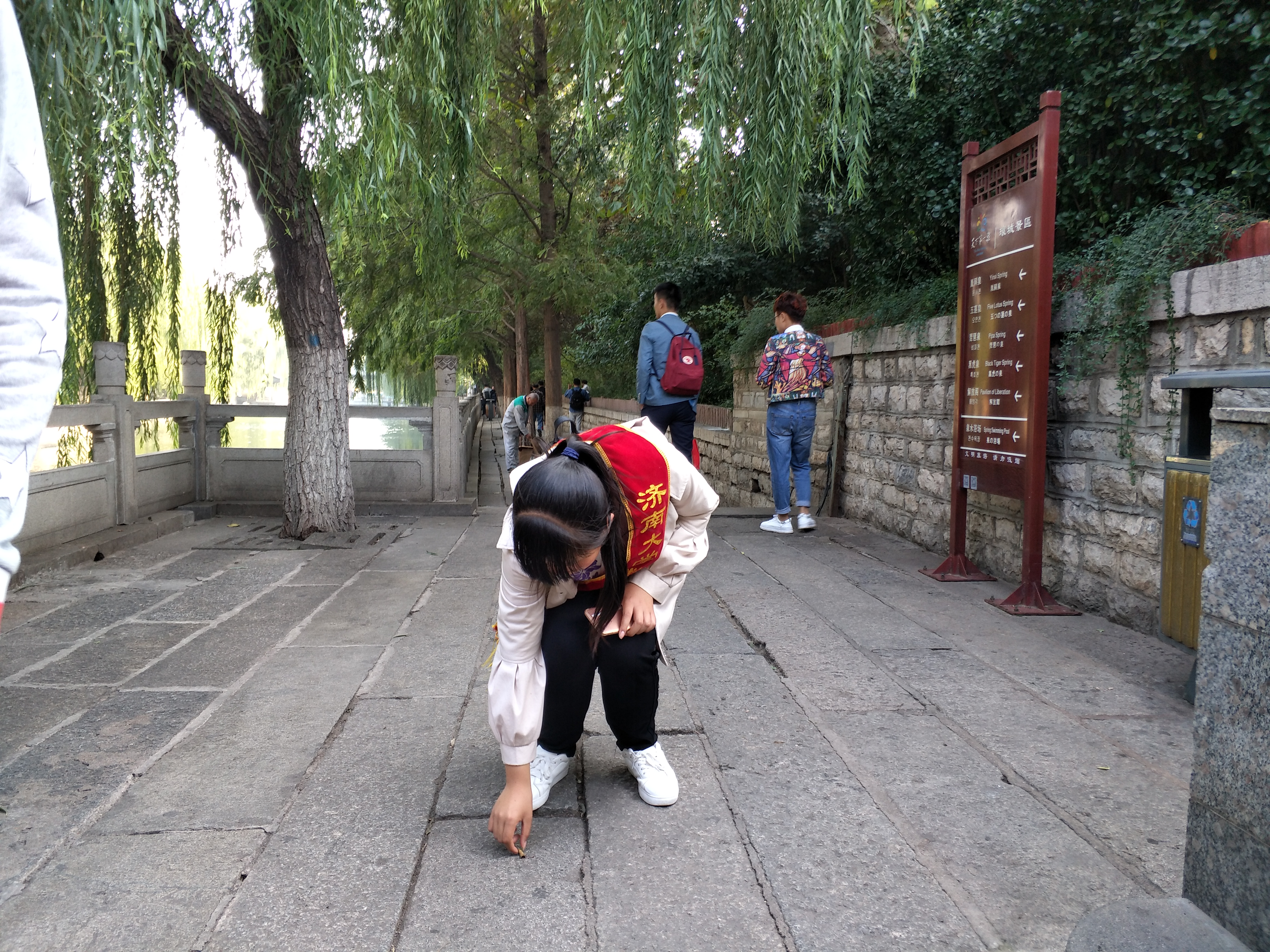 青年志愿者积极参加。活动伊始,由无痕讲师向志愿者们介绍了无痕活动的流程并交给大家简单易懂的无痕手势。在数院组织者的带领下每个人拿到了清理工具和“无痕绿色外套”。然后则由无痕小组带领,志愿者们按照活动要求,环黑虎泉参观且对沿途垃圾、废弃物进行清理,积极践行“无痕、绿色之行”原则。在户外课堂上,志愿者们认真倾听讲师的讲解,包括自然文化知识、老济南样貌等。并且一起探讨环保措施,并在实践中认识自然、亲近自然。