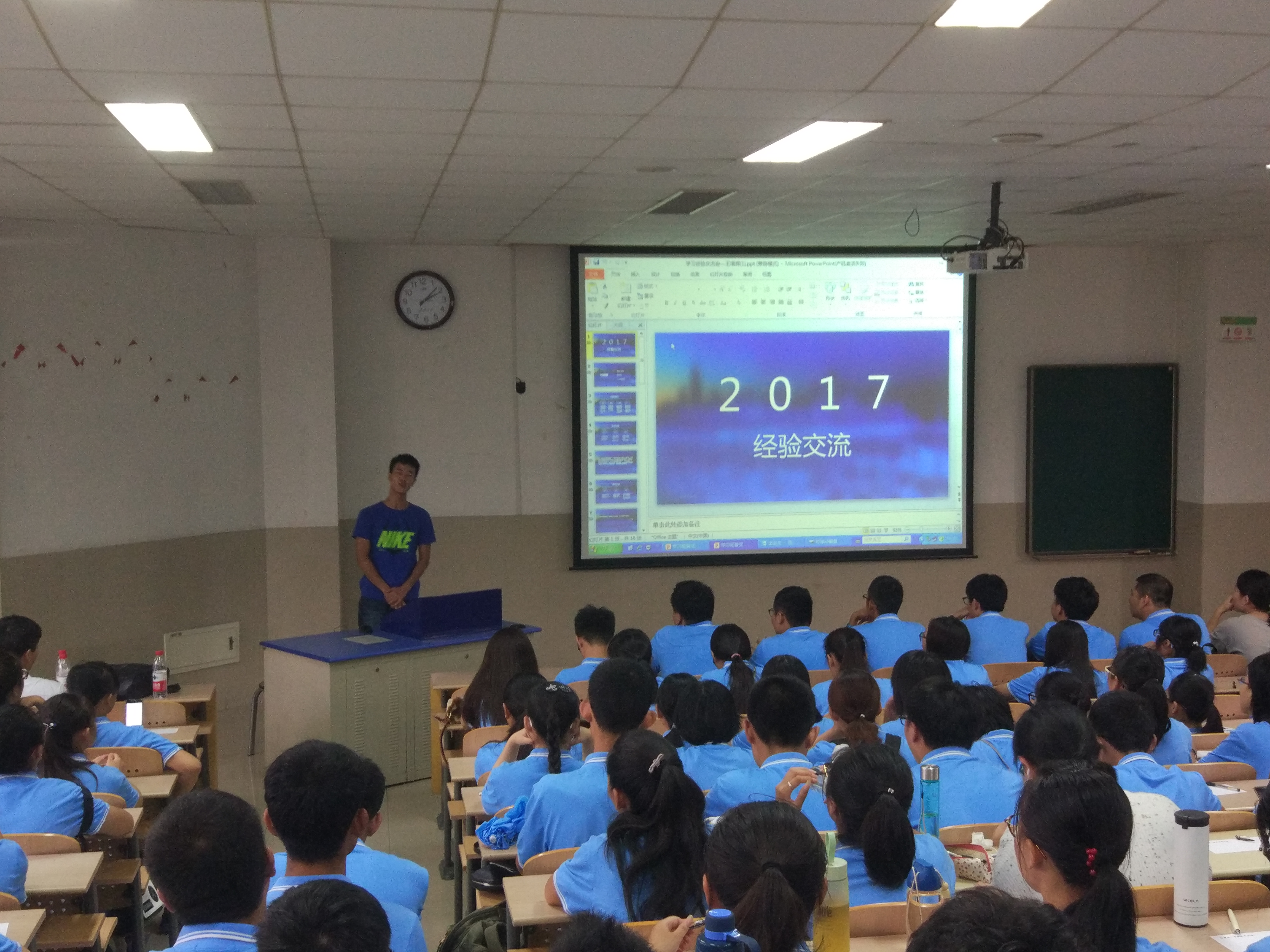 学生会主办的17级新生学习经验交流会在11教6302顺利举行。17级新生辅导员吴立军老师出席活动,王增辉、刘文君、段玉洁作为优秀学长学姐代表参加了交流会。