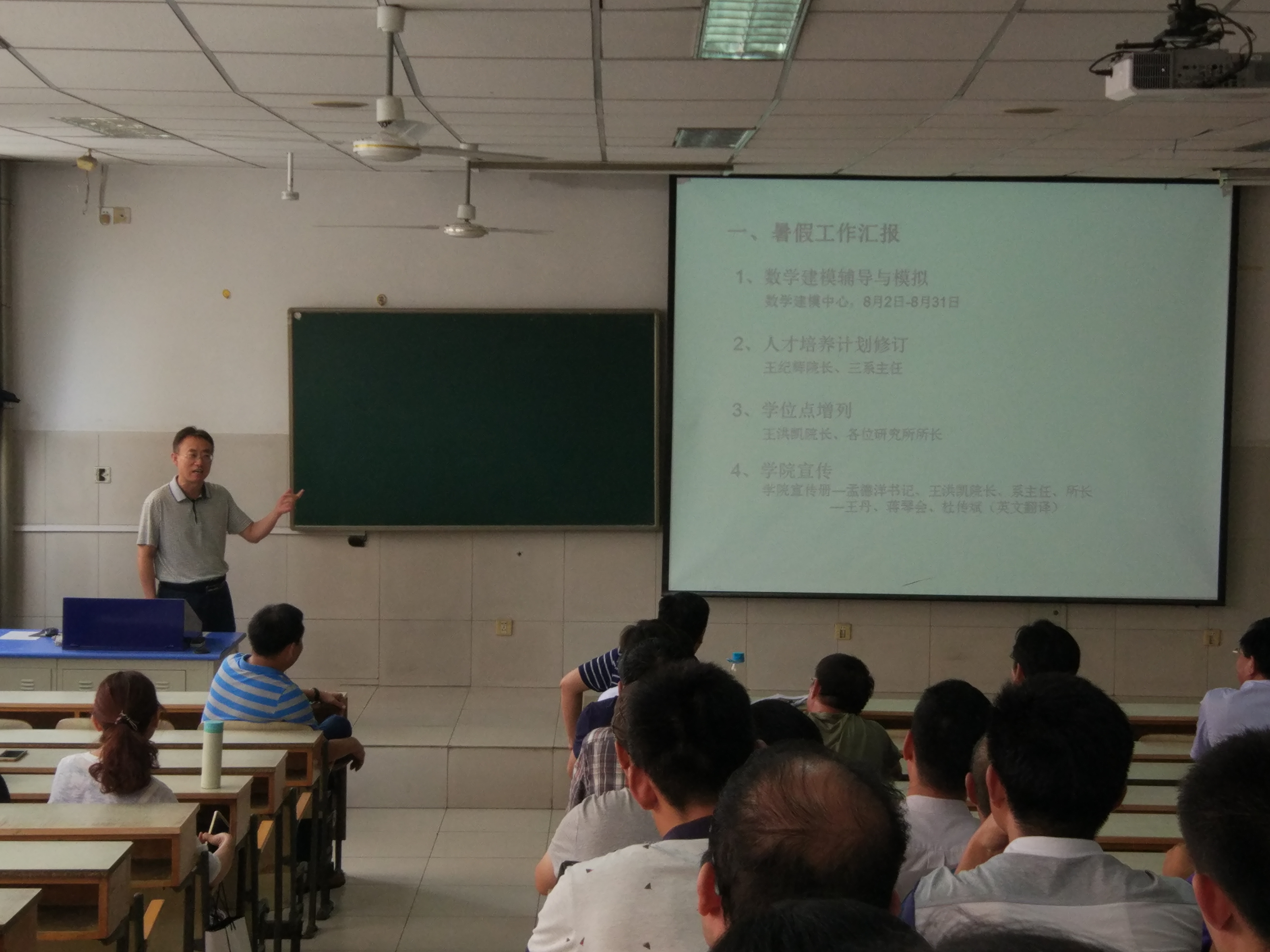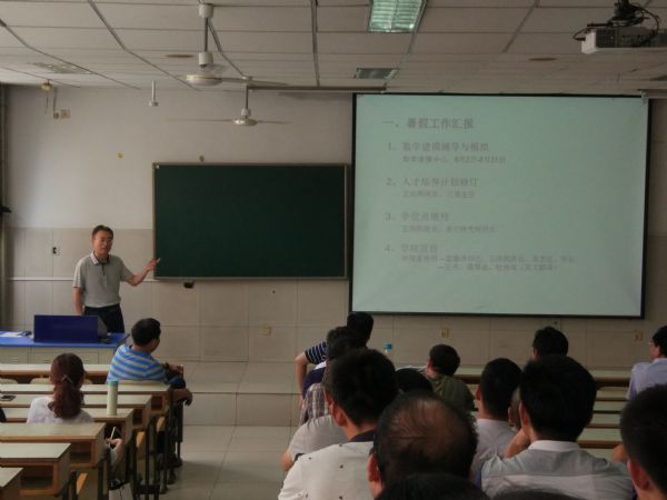 取得的成绩进行了详实总结,肯定了各位老师的工作成绩,特别是部分教师今年在国家基金方面取得的成绩表示高度赞扬。开学在即,要求全体员工要认真部署好新学期的工作,确保新学期各项工作的平稳运行。