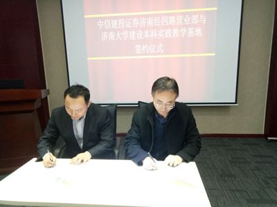 管院长代表学校与中信建投证券公司代表许明磊经理签订了建立实践教学基地的协议,并为基地挂牌。参加人员还一起参观了中信建投证券公司办公区。