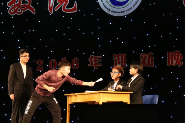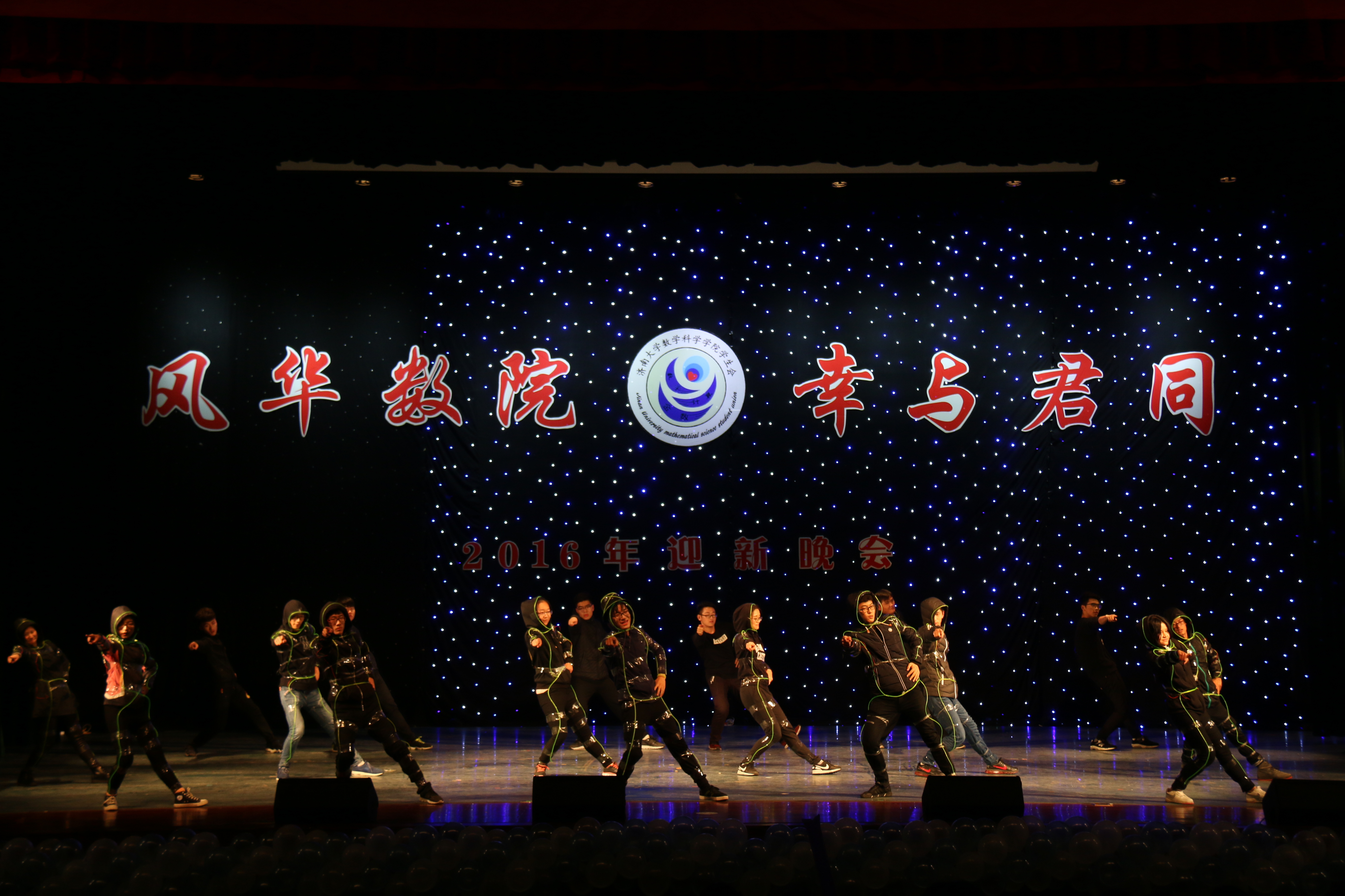 专业特色,把数学各学科用诙谐的语言在舞台表现出来,以角色大反串的形式上演了一场别开生面的爆笑后宫大戏。哑剧《你有我也有》以夸张的表演和精彩的配合让现场观众笑不拢嘴。创意节目《黑夜精灵》以及《手套荧光舞》,其精美造型,凭借动感的舞蹈节奏在黑暗中展现了一场精彩绝伦的光影景象。一时间晚会现场群情激昂,掌声雷动,气氛一次次达到高潮。同时与西藏中学的小朋友们一起现场表演的《藏汉一家亲》,给观众带来了少数民族舞蹈的美妙体验。晚会上,辅导员赵华磊老师与学生的倾情朗诵,诉说“我”的济大情,打动着每一位济大学子……这些精彩纷呈的节目给观众带来了一场无与伦比的视听盛宴,充分展现了数院学生多才多艺、自信昂扬的精神风貌。