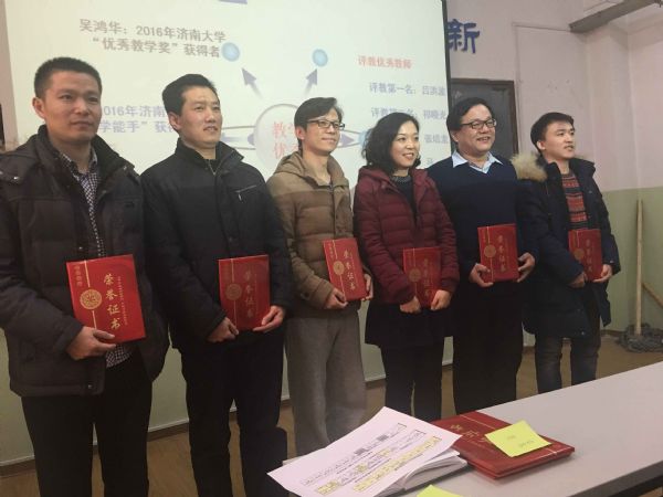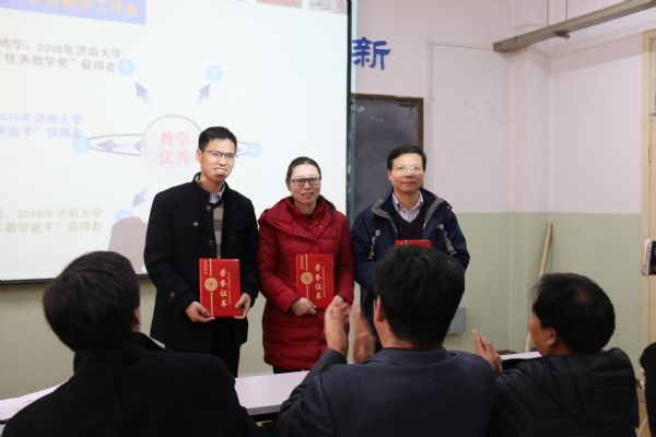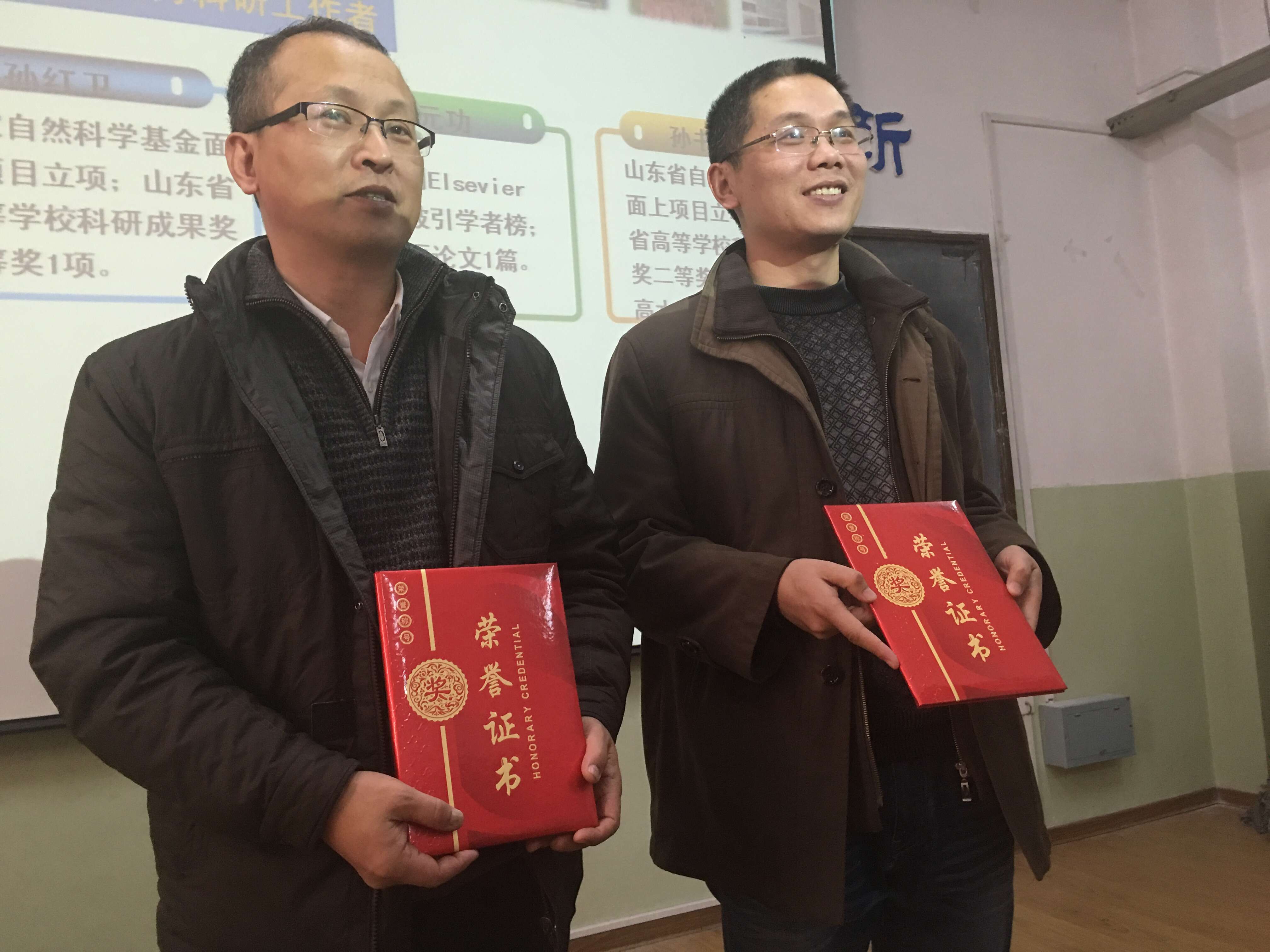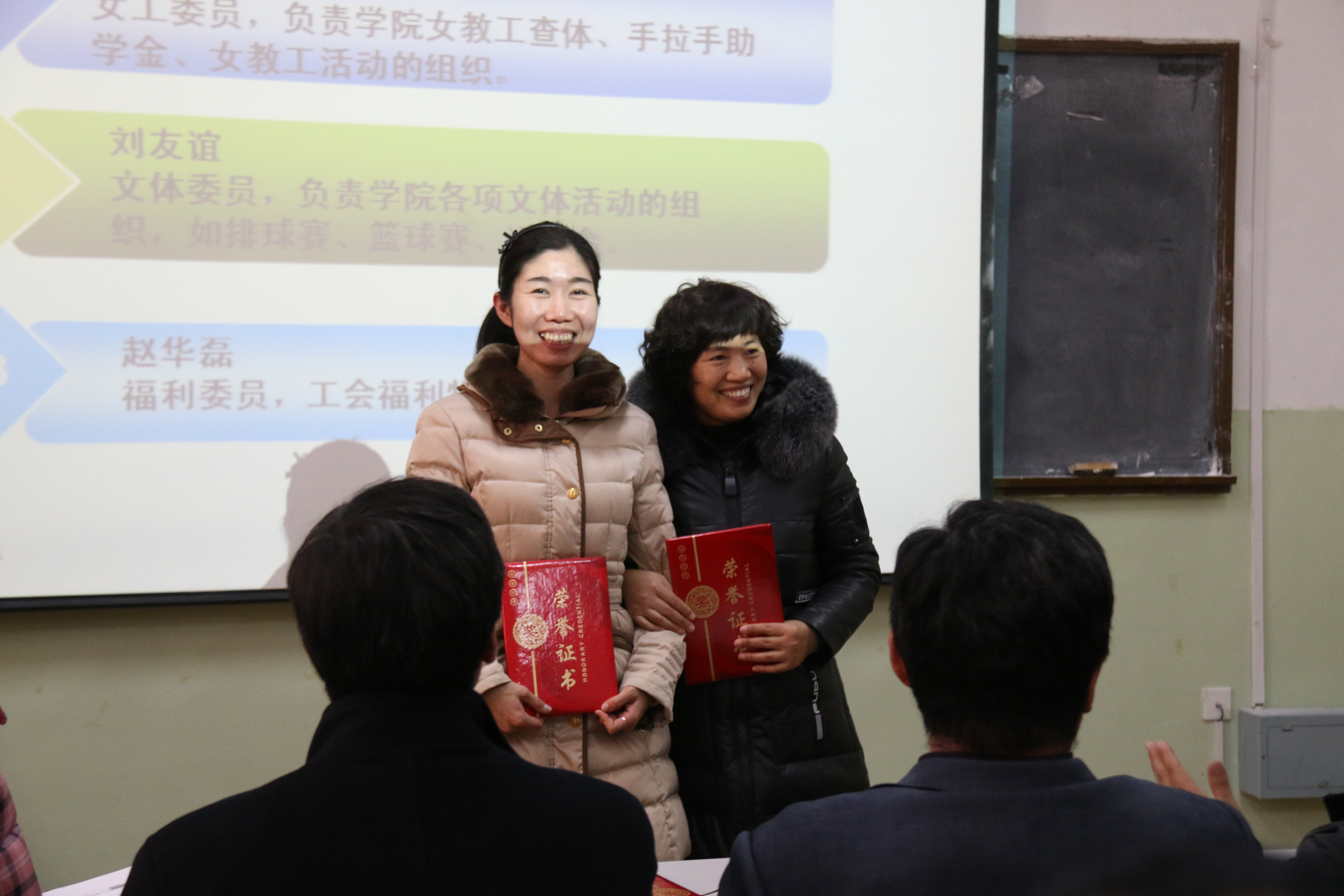 2016年十大事件;表彰了数学建模指导中心、数学教育教研中心、微分方程研究所等先进集体;表彰了优秀科研工作者孙红卫、孙元功、孙书荣、陈观伟、张娜、李楠;表彰了优秀教学工作者张苏梅、苗丽安、孙书荣、吴鸿华、王洪凯、宋玉成;表彰了评教优秀的前六名教师吕洪波、祁晓光、张培龙、马 超、吴兆荣、赵 燕;表彰并奖励了班级考研成绩优秀奖的李可峰;表彰并奖励了科创工作开拓奖的徐法升;表彰并奖励了工会活动积极分子马巧灵、刘友谊、赵华磊。