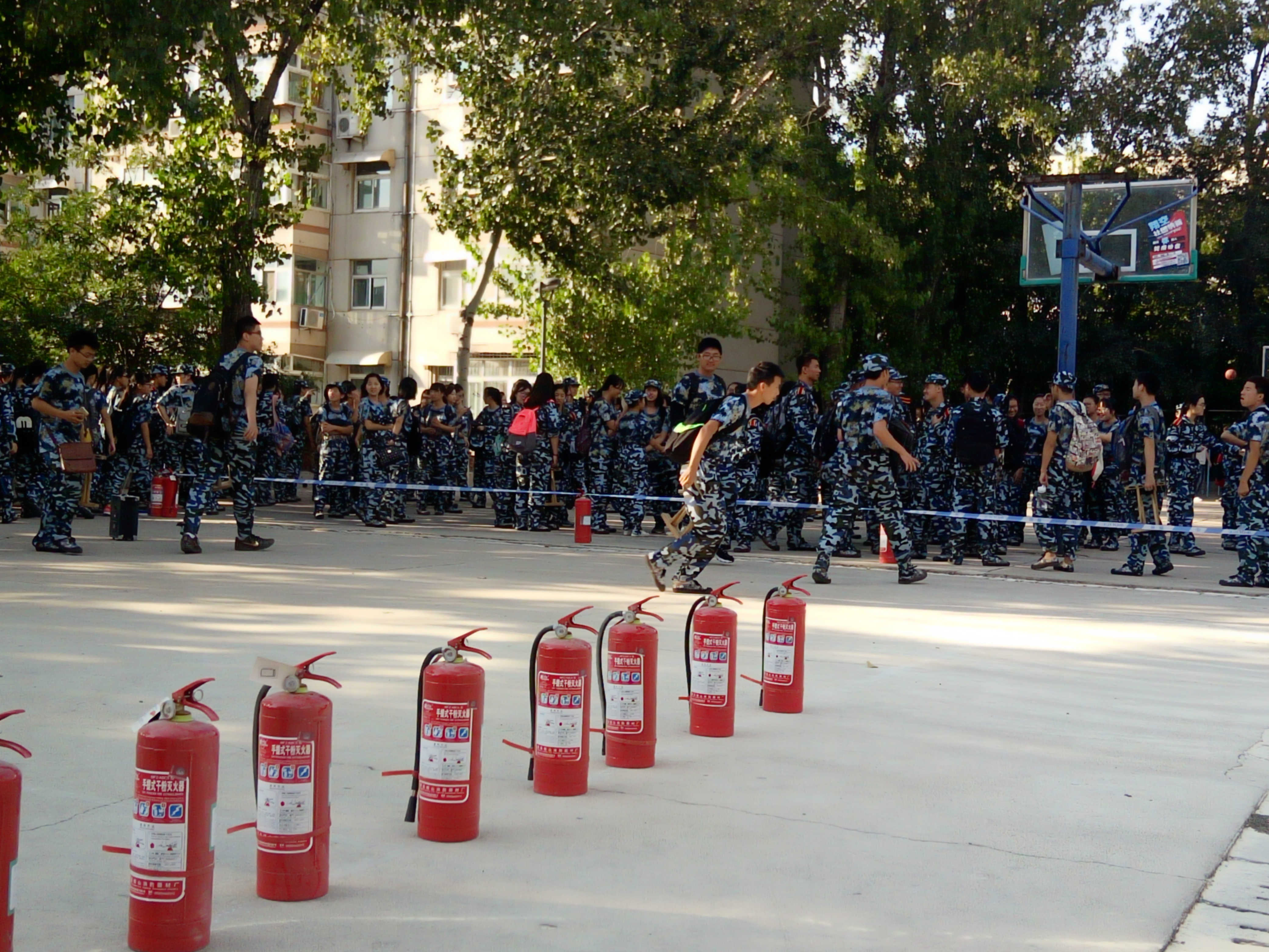 下午四点,在对同学们进行了相关的逃生知识讲解后,各连队负责人在楼道、大门开始组织大家有序撤离,进行疏散逃生、自救演练。演练现场浓烟滚滚,同学们迅速有序地从大礼堂跑出,在短时间内按照之前规定的应急逃生路线迅速疏散到礼堂后的篮球场。演习结束后,消防宣传人员通过分析国内校园典型火灾案例,向师生们详细讲解了火灾的危害、发生火灾后如何报警、火场如何逃生、初起火灾的扑救方法、如何正确使用灭火器等消防常识。宣传人员还为新生实景演练了消防器材的使用,大家也通过亲自使用灭火器加深了对此次培训活动的印象。