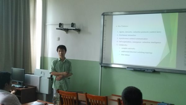 报告会上,肖峰教授从多智能体系统的工程背景入手,介绍了多智能体系统分布式协同控制的相关概念和发展概况,提出了多智能体系统基于边异步数据采样的一致性问题,详细阐明了解决该问题的主要思想和研究思路,并提出了进一步研究的科学问题。会后,复杂系统分析与控制团队的师生们还就报告中的相关问题和多智能体系统的国内外研究现状和趋势与肖峰教授进行了探讨和交流。