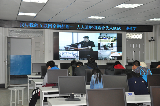 首次跨校区共同参加了人人聚财创始合伙人&CEO许建文老师的“我与我的互联网金融梦想”的远程视频学术讲座。