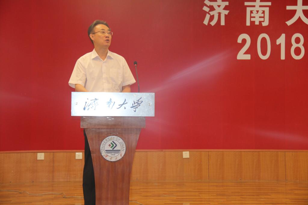 上午九时,典礼在庄严的国歌声中拉开帷幕。典礼上,管延勇院长致辞。他首先代表全院教职工对2018级新同学的到来表示热烈的欢迎和衷心的祝贺,并希望在济大数院的四年时光里,能够为同学们今后的发展增添上最浓墨重彩的一笔。随后,管院长从师资力量、教学成果、科研成果、所获荣誉等四个方面对草榴社区