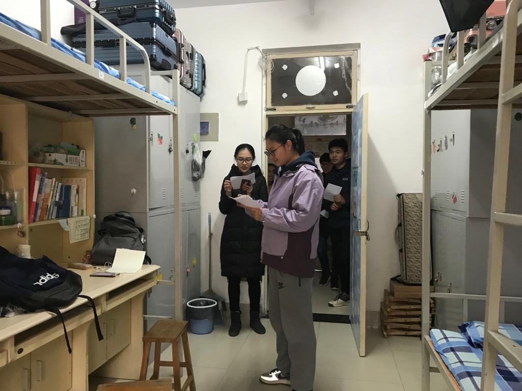 下午三点半,领导老师准时到达32号楼,集中统一对学生宿舍安全、卫生、设施等方面进行了全面检查,并重点抽查了各班级学生干部宿舍、优秀班集体宿舍,学生党员宿舍。针对学生宿舍存在的卫生打扫不彻底的问题,孟书记要求学生进行现场整改,并一再叮嘱学生要认真打扫卫生,养成良好的卫生习惯,特别叮嘱学生们,到了冬天,要保持宿舍通风透气,加强身体锻炼,防止流行性疾病发生。针对走访检查过程中发现的拉扯乱拉电线的问题,孟书记强调,每一位同学都要强化个人安全意识,防微杜渐,力争把宿舍建设成一个“安全、文明、舒适、和谐 ”的学习和生活场所。
