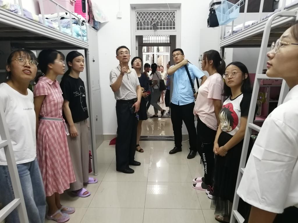 党委书记侯启海、院长管延勇、党委副书记兼副院长孟德洋与学办全体辅导员、部分班主任代表深入学32、34学生公寓,检查学生公寓配套设施,亲切看望2019级新同学。