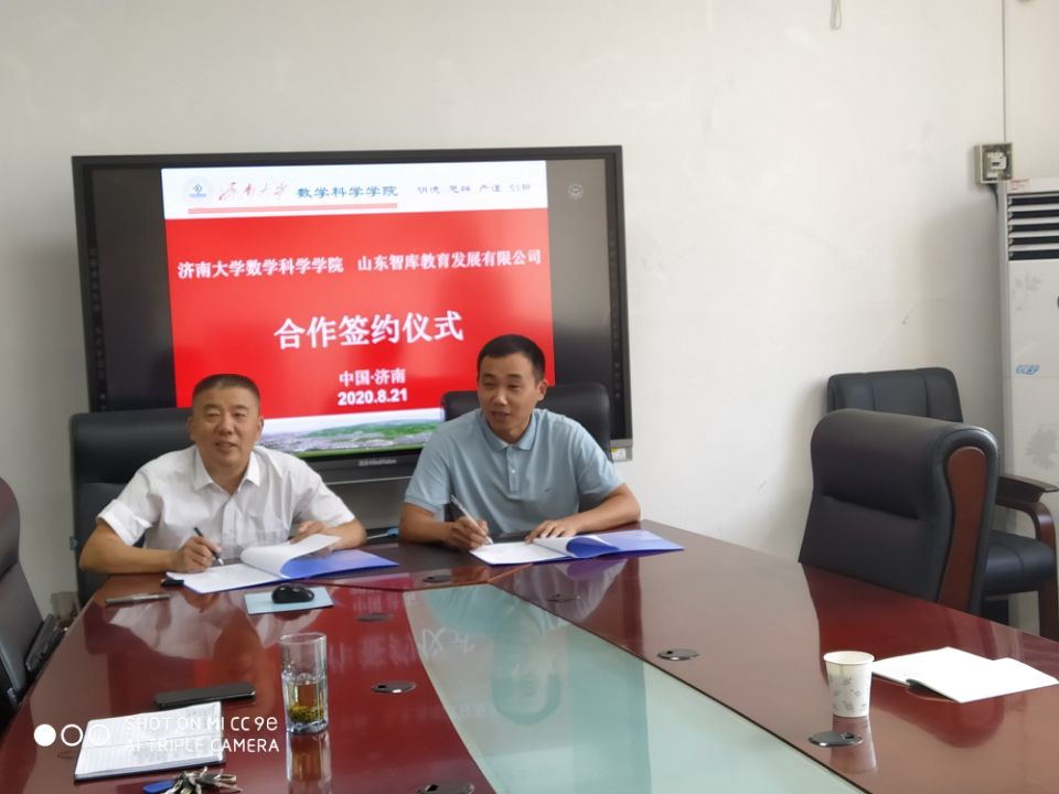 党委书记侯启海与山东智库教育发展有限公司副总经理张士超作为双方代表出席。