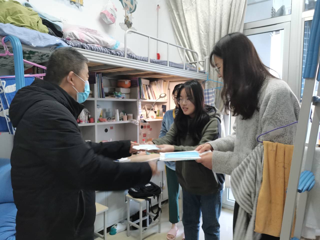 3月2日,侯书记、张沂红副书记以及学办辅导员深入学生宿舍,走访慰问返校同学,并为返校同学带去了口罩等防疫物资。侯书记一行认真查看了学生的宿舍卫生、通风条件、内务整理、生活实施运转等情况,逐一排查了宿舍可能存在的安全隐患,详细了解了学生返校过程以及返校后的学校生活情况,叮嘱同学们要养成良好的生活卫生习惯,做到戴口罩、勤洗手、多通风,严格执行学校每日早中晚体温检测制度,同时,希望同学们尽快根据学校作息调整安排好自己的学习和生活,养精蓄锐,为新学期上课做好准备。走访结束后,同学们纷纷表示,疫情防控期间,一定会严格遵守学校和草榴社区
