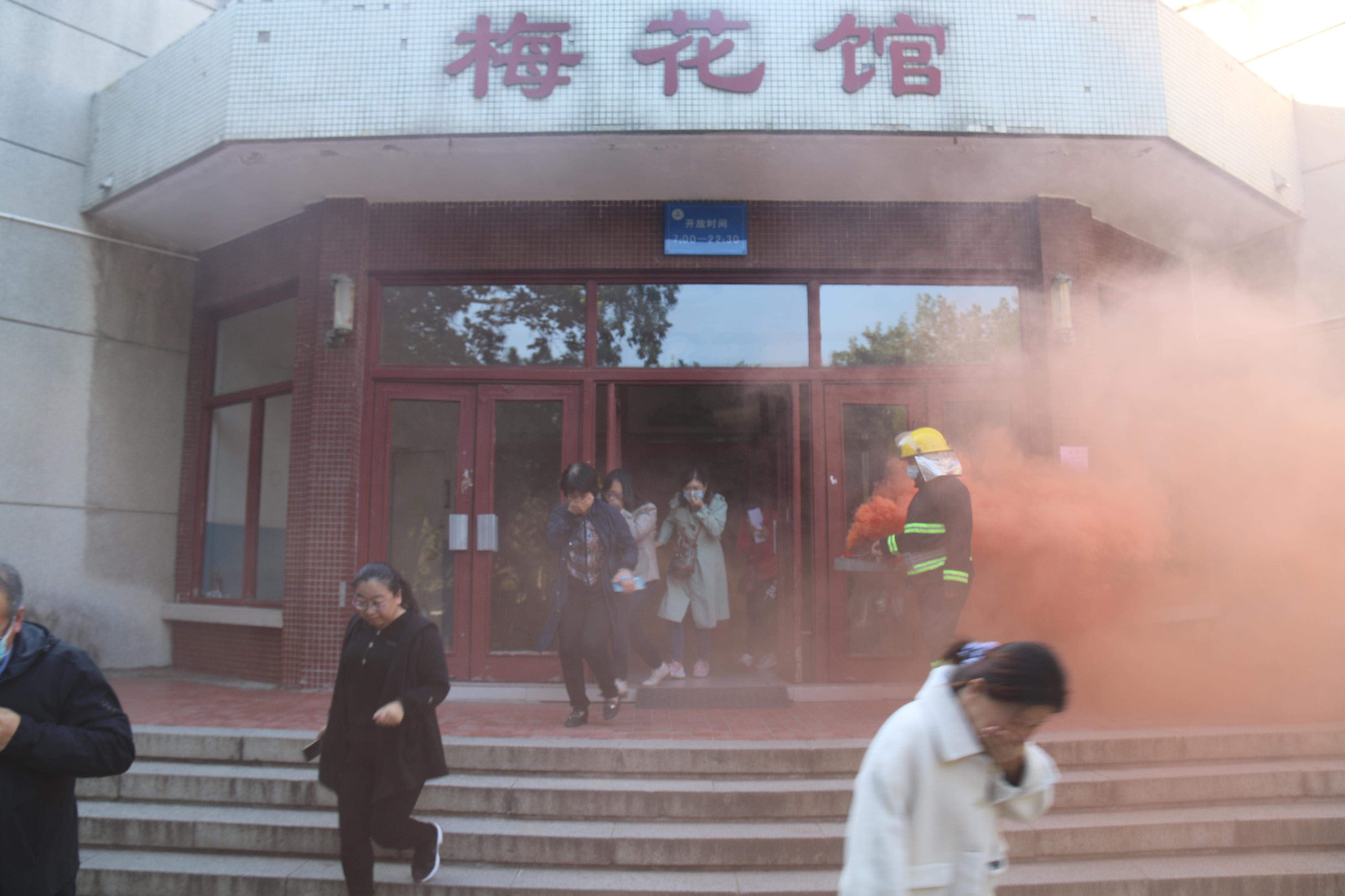举行了消防安全教育暨灭火逃生疏散演练,全体教职工、研究生参加演练。演练前,学校安全管理处消防管理科相关人员为全体教职工普及了消防安全知识,详细介绍了灭火器的使用方法与注意事项。逃生疏散环节,消防工作人员在梅花馆门前设置了模拟烟雾逃生场景,警报响起,教职工捂住口鼻,做好防护,依次有序地撤离到安全地带。演练过程中,全体教职工和研究生全员参与到灭火实战中,“提、拔、握、对、喷”,每一步都力争做到精准。经过实战演练,有效提升了师生员工的疏散逃生和灭火实战能力。