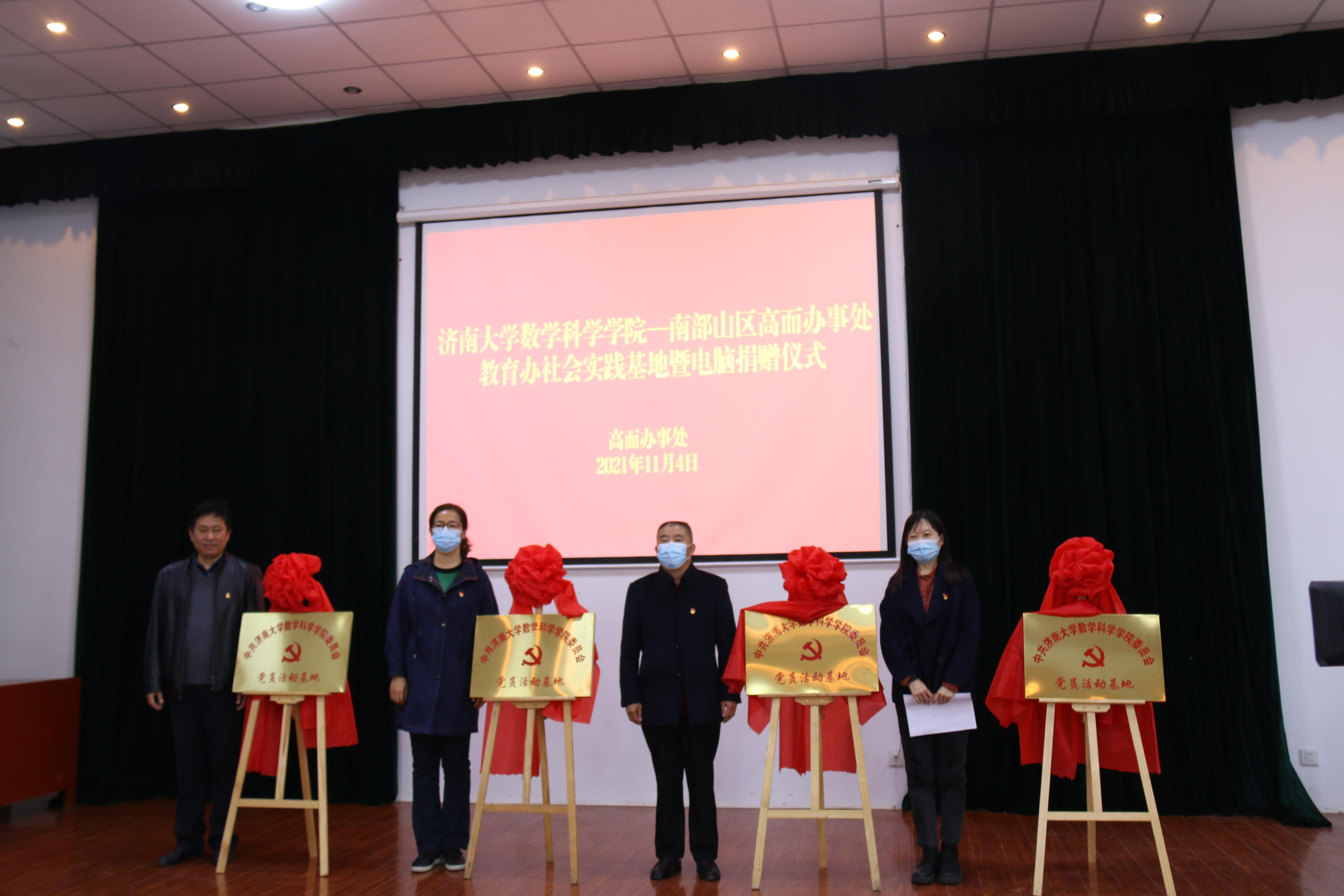 领导、南山区管委会领导、南山管委会高而办事处领导及四所中小学校长一起为党员活动基地揭牌。