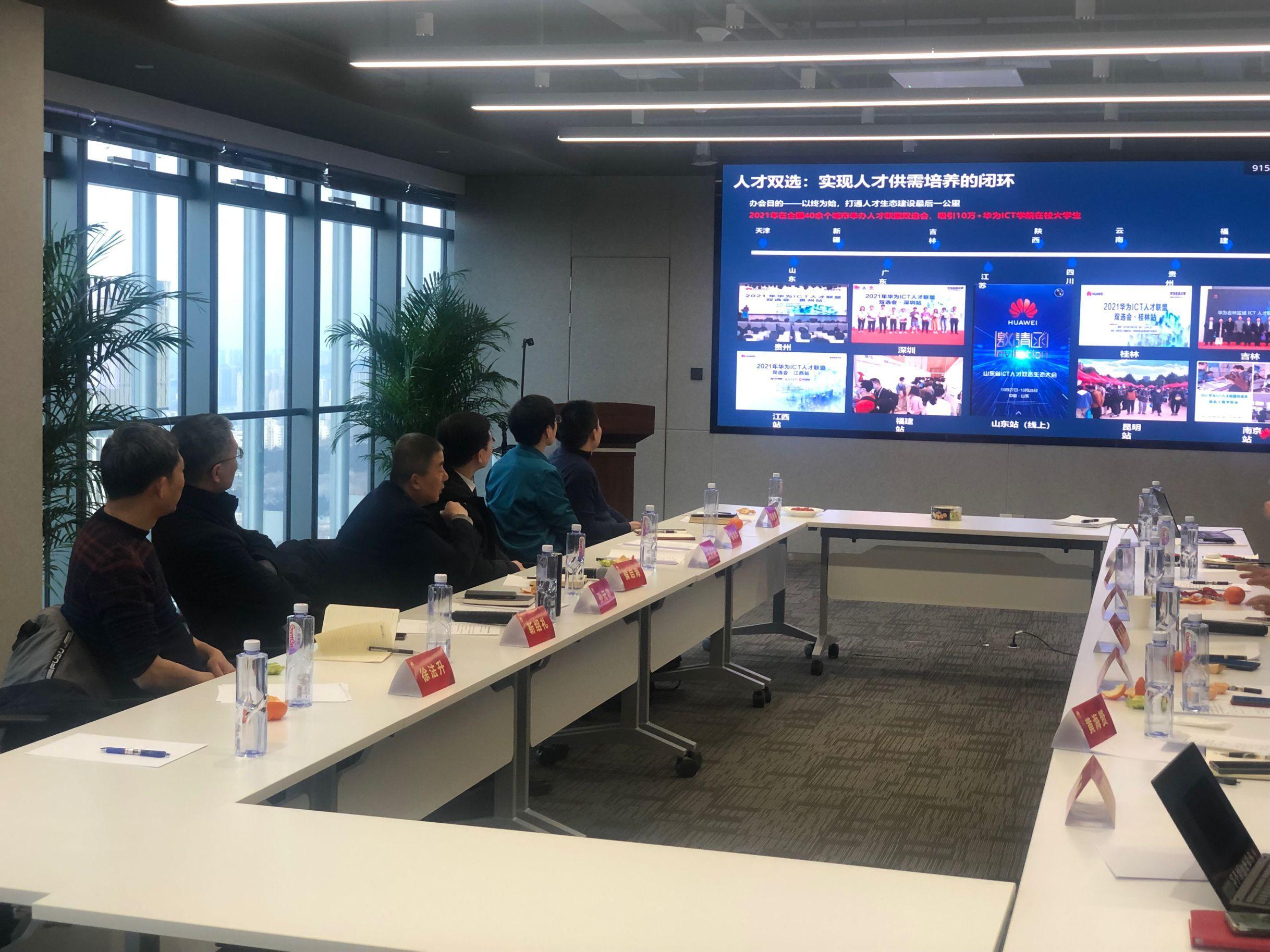 人工智能研究院秘书长苑修锦等一行7人赴华为山东终端业务部开展合作交流。华为山东终端业务部总经理李成杰、人力资源总监徐胜等人参加座谈交流。