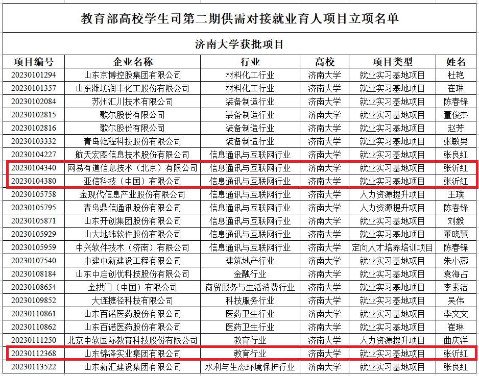 在教育部第一期供需对接就业育人项目中获批立项2个,两期累计获批5个供需对接就业育人项目。