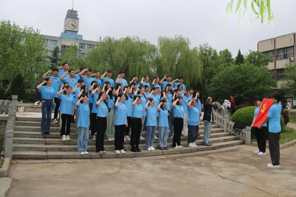 组织全体学生预备党员开展“重温入党誓词 展现青年担当”五四主题党日活动,鼓舞学生党员坚定理想信念,以实际行动检验学习党的二十大精神成果。