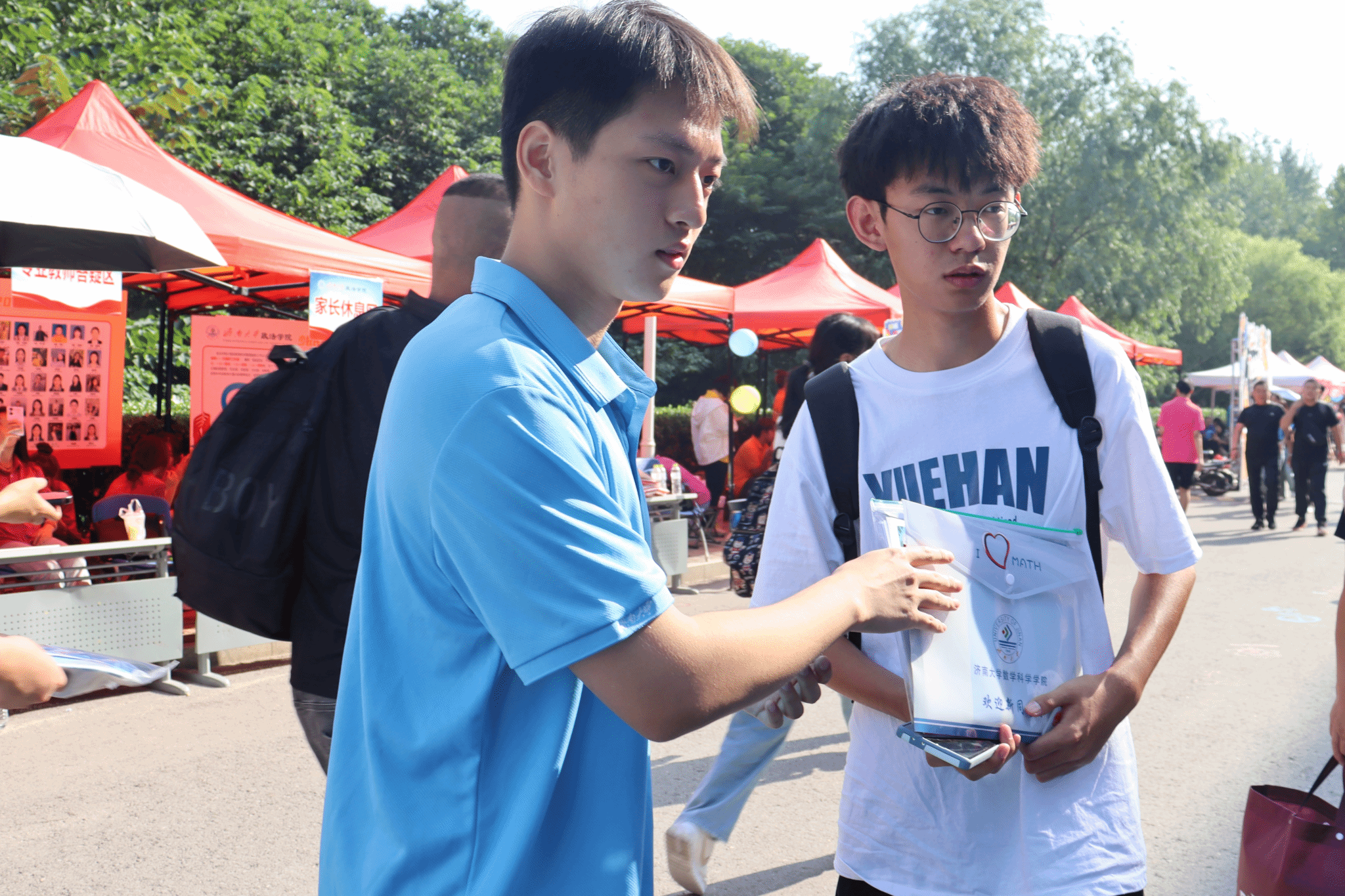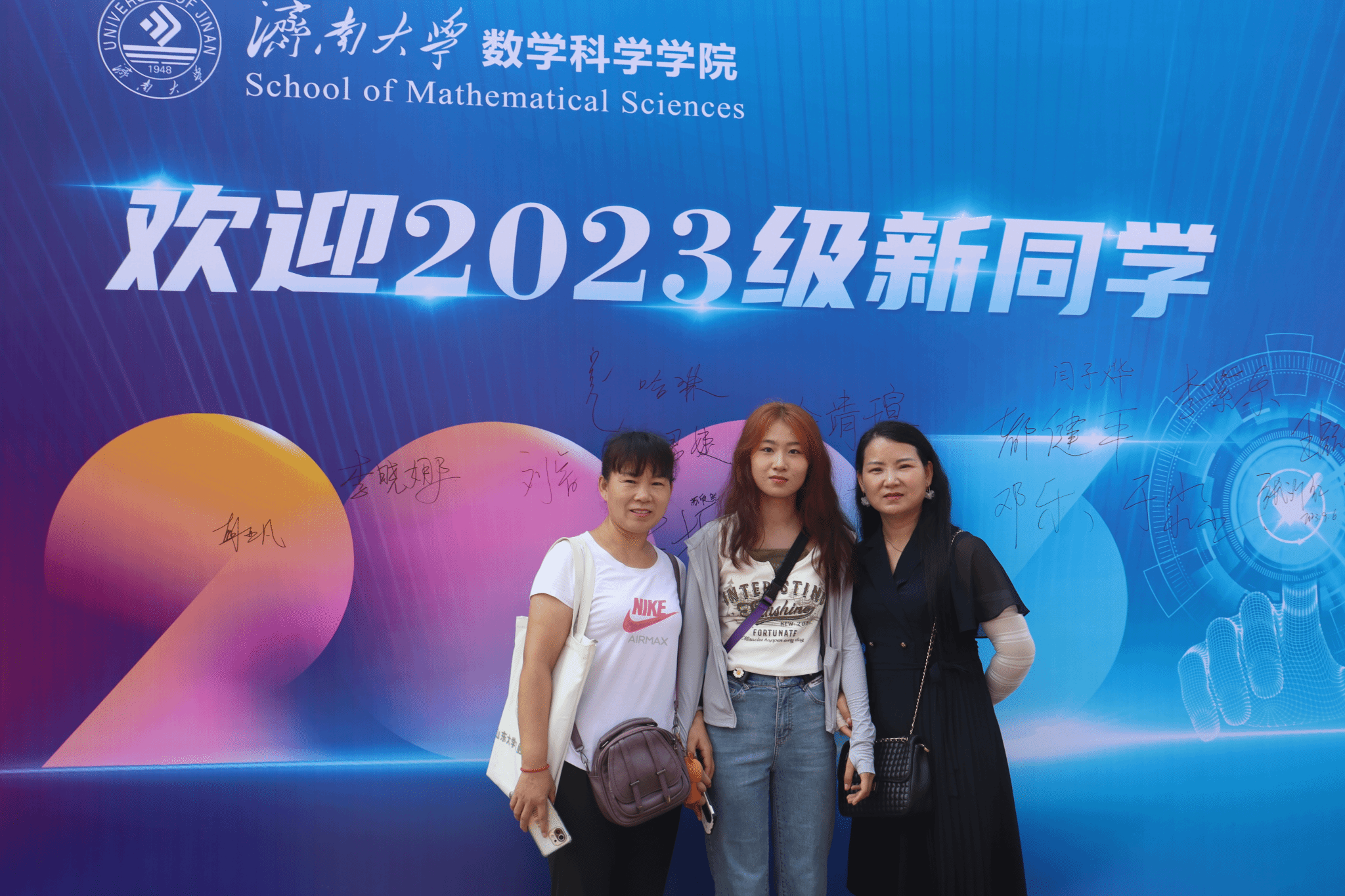 精心布置迎新报到处,安排了形式多样的打卡活动,元气满满,别出“新”裁,新生签名墙、合影留念墙、未来寄语信等留下了新生刚入济大的精彩瞬间。不少新生手持标语牌在拍照打卡点,和父母家人拍下第一张在济大的合影,定格美好。
