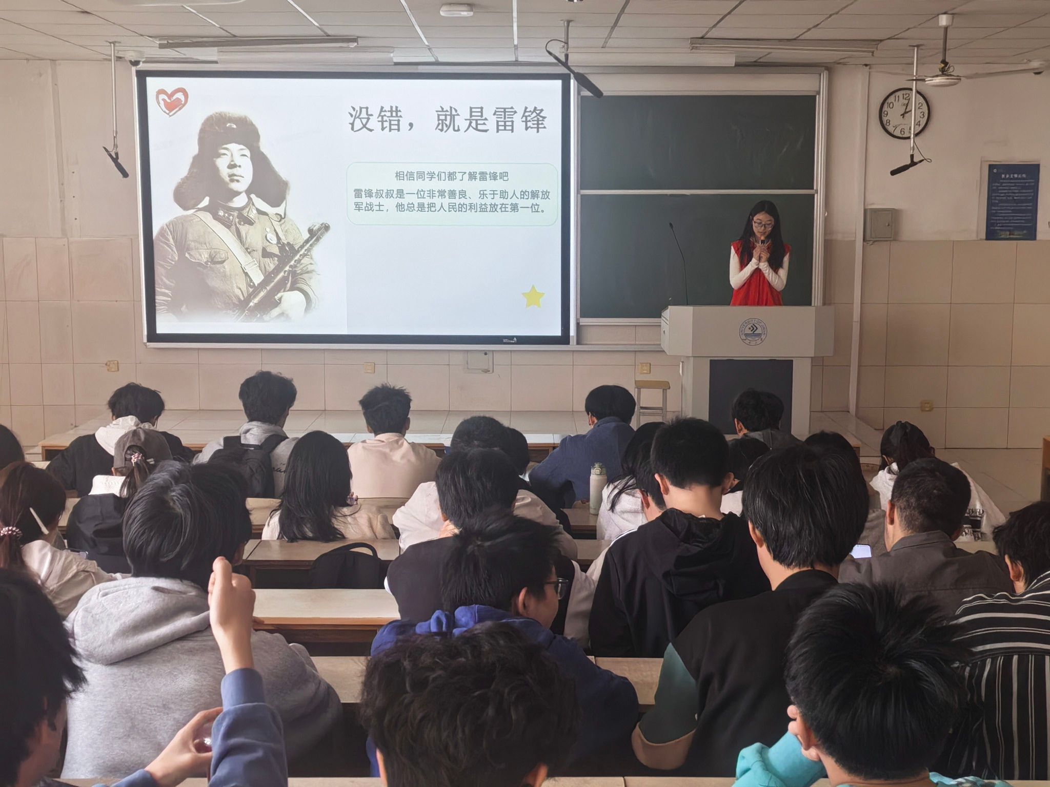 青年志愿者协会在第二教学楼104教室举办“青社学堂”宣讲活动。本次活动以“学雷锋、树新风”为主题,面向各年级同学开展。