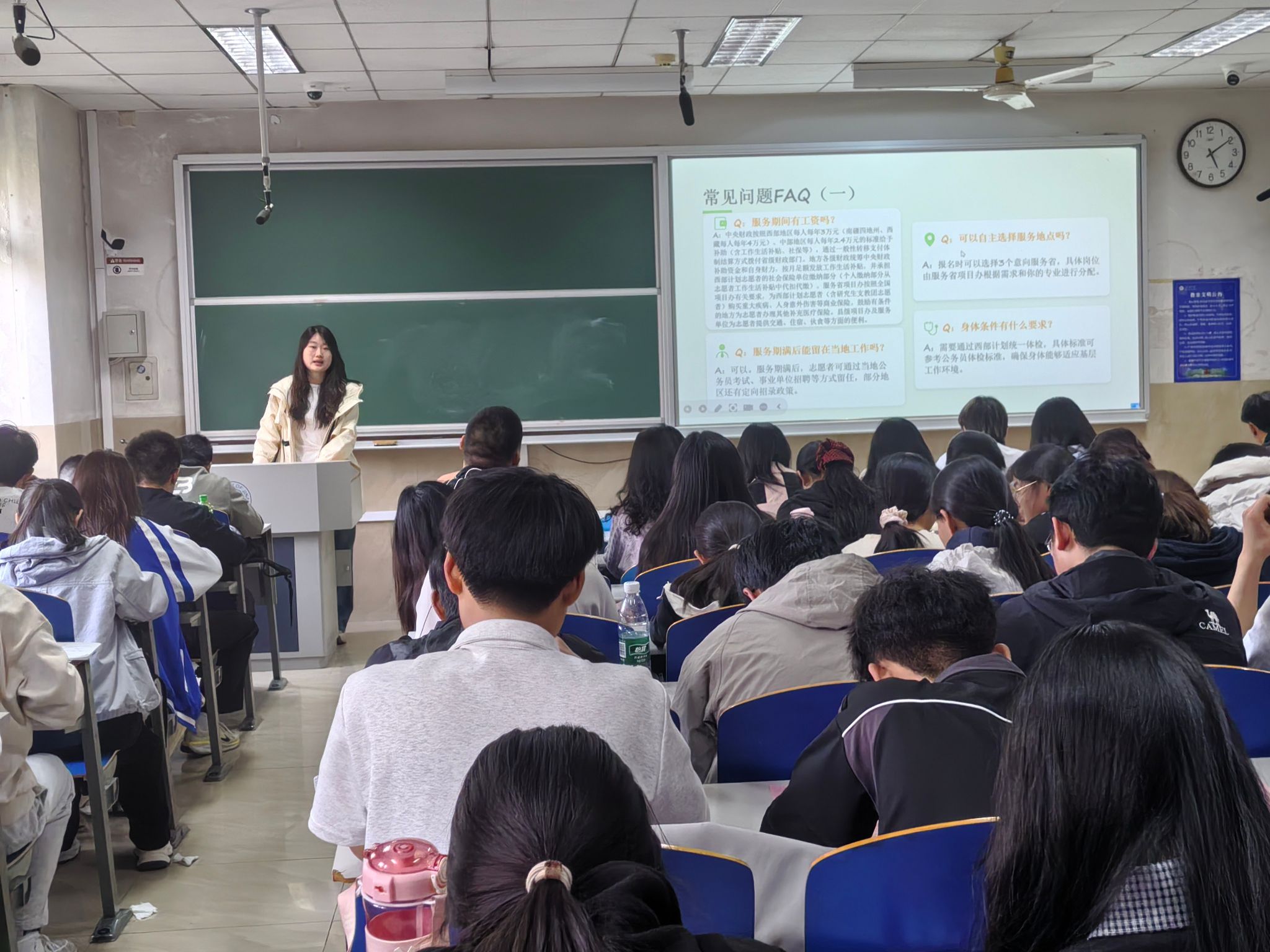 互动答疑环节,现场学子踊跃提问、积极交流,聚焦报考流程细则、岗位选择、基层生活与工作适应等实际问题进行咨询。宣讲团紧扣西部计划官方政策,逐一答疑、细致讲解。