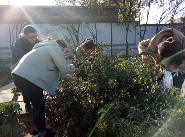 志愿者早早地就集结了队伍,准备乘车前往康复中心。刚到康复中心,志愿者们就受到了康复中心人员的热情欢迎。在领队给队员们说明了任务分配和注意事项工作后,大家都摩拳擦掌,认真投入到自己的工作中去,尽管工作单调辛苦,但丝毫没有懈怠。物品柜、门窗、以及房间角落,都被志愿者们仔细打扫,并且“地毯式”的把地拖了一遍。卧室,杂物间,器材室等房间在志愿者的手下,重新变得干净整洁。整个过程大家都放轻脚步,尽量不会耽误孩子们的正常学习生活。康复中心领导指导志愿者们去菜园给孩子们摘些红辣椒,经过半个多小时的采摘,大家收获颇丰。志愿服务结束后,志愿者们挥手跟康复中心告别。虽然志愿者们离开了,但是他们把对孩子们的美好祝福留在了这里,同样也留在了他们的心里。
