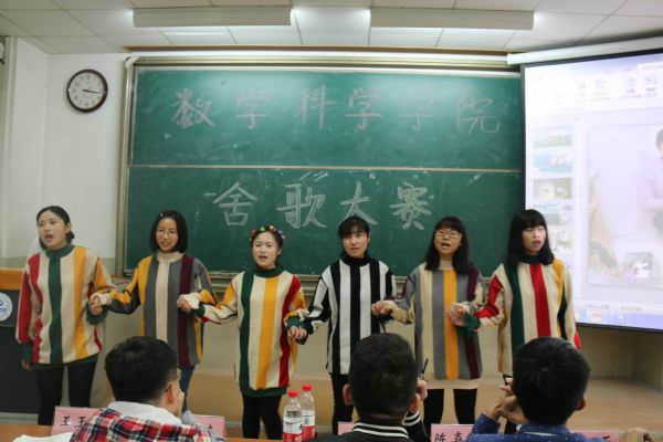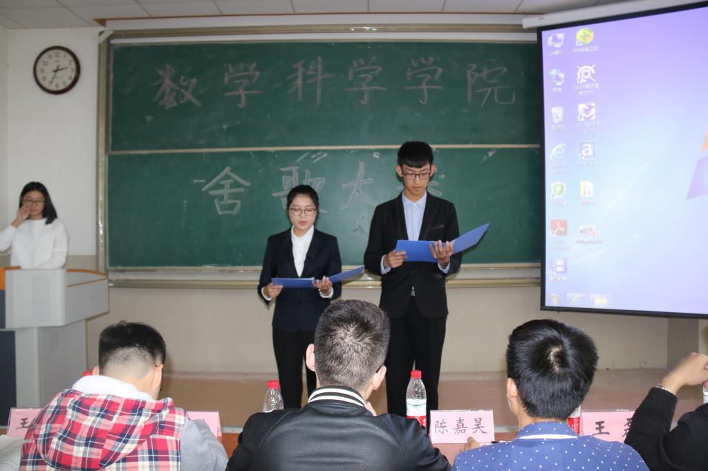 学生会社区管理服务中心承办的舍歌大赛在11教一段501教室举行初赛。本次大赛由学生会各位主席担任评委,由赵慧敏、王哲主持。此外,到场的还有学生会各位部长,各参赛宿舍同学。