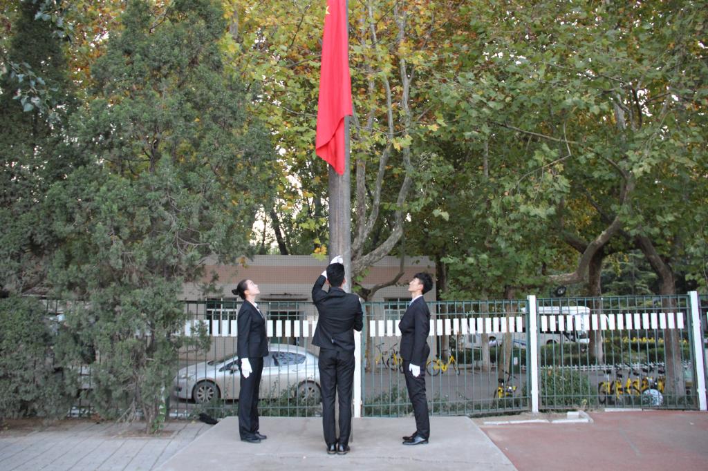 在西校区北苑大操场举行了升旗仪式,参加此次升旗仪式的有17级新生辅导员吴立军及全院新生。此次升旗仪式由付相达和顾一凡主持。