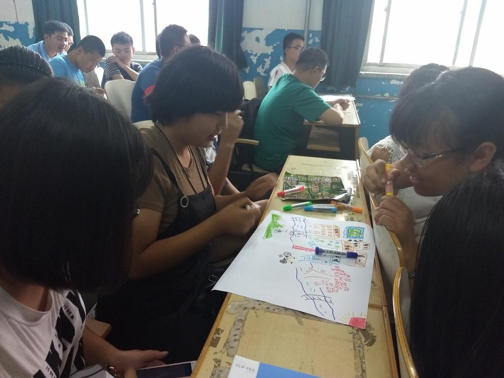 活动共分为三个阶段:“画出你心目中的济大”、“蒙眼作画”、“你划我猜”。主持人致开场词后,活动正式开始。首先进行的是“画出你心目中的济大”,同学们积极投入、用心绘画,画完之后同学们也积极走上讲台与同学分享自己的感受。接下来是“蒙眼作画”,同学们蒙上眼睛凭着自己的感觉画出主持人让画的东西并交给主持人,再到主持人手里认出自己画作,整个过程每一个人都在积极参与,气氛融洽。最后进行的是“你划我猜”,同学们分好小组,每个小组依次到讲台进行游戏,游戏过程中同学们配合默契,体会到了团队合作的乐趣。