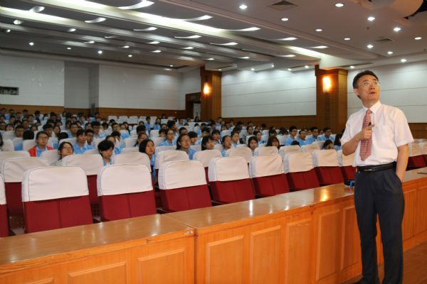 历史文化、专业体系、专业现状及在国内外的地位。管院长结合学校“弘毅、博学、求真、至善”的校训,鼓舞新生自觉养成“勤学、修德、明辨、笃实”的品质,并以数院往届优秀毕业生为榜样,鼓舞新生“长江后浪推前浪”,呼吁新生们向往届优秀毕业学习高效、快速有质量的好方法,朝着更高的目标前进。