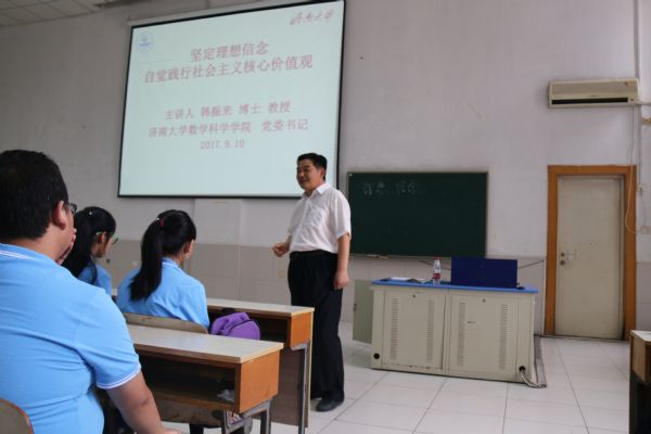 为了使2017级新生尽快树立正确的人生观和价值观,了解理想信念对当代大学生进步的重要性,草榴社区 于9月10日下午在第二教学楼201举行新生入学教育。活动由草榴社区 党委书记韩振来主讲。