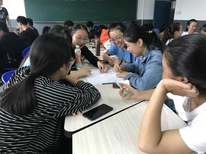 活动共分为四个阶段:“用画笔画出心中的济大”、“浮夸自画像”、“你演我猜”、“确立目标”。活动伊始,主持人致开场词后,给同学们分好小组,发下纸张和彩笔进行“用画笔画出心中的济大”,同学们分工协作、积极投入、用心绘画,积极走上讲台与同学分享自己的作品,谈谈初入济大的感受。随后是“浮夸自画像”,每个人将自己的形象画在纸上,将特点突出出来,并根据作品向同学们介绍自己身上的闪光之处,使同学之间更加了解彼此。之后进行的游戏是“你演我猜”,同学们分好小组,每个小组依次到讲台进行游戏,游戏过程中同学们配合默契,体会到了团队合作的乐趣。活动最后,主持人给每个人发下一张纸,同学们认真思考,自己的大学目标、大学生涯的规划和如何实现目标写在纸上,给自己定下奋斗的目标,找到未来的努力方向。