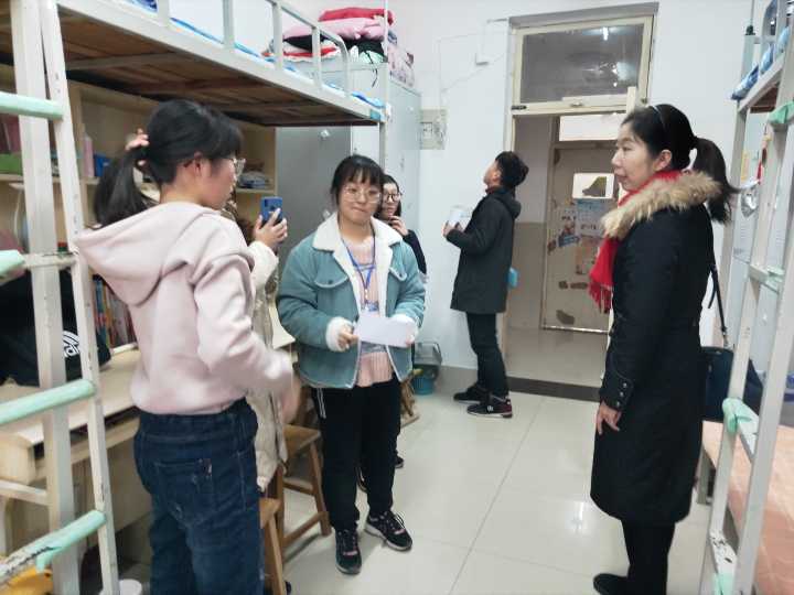 学生会社管部部长向温馨宿舍评分人员分发温馨宿舍评分表,并且详细地介绍评分标准以及活动的注意事项。随后,评分人员走进学生宿舍,对学生宿舍的卫生,宿舍的装饰,宿舍的创意以及宿舍文化等方面进行评分。同学们积极参与,老师们亲切的与同学们进行交流,和谐愉悦的气氛弥漫着整个宿舍。评分人员本着认真负责的态度参观了每个宿舍并给出了合理的分值。活动的最后,学生会社管部部长收集评比人员的评分表,对其评分结果进行总结分析并评选出了一二三等奖。