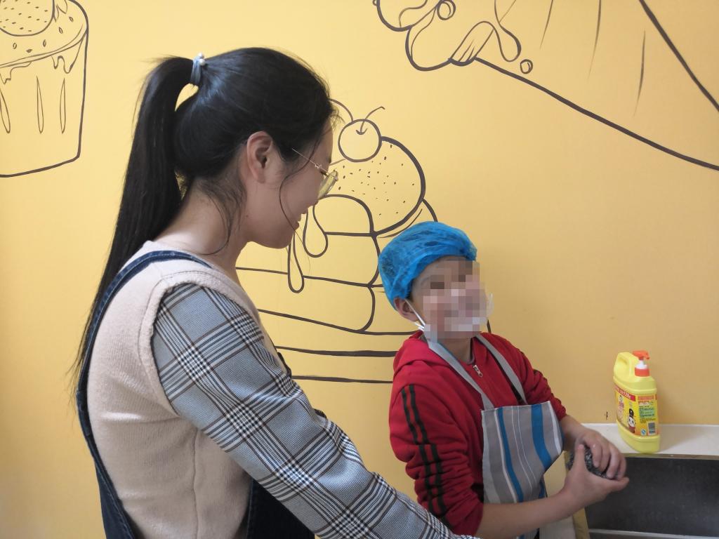 下午一点半,志愿者们到达目的地后与特训中心老师取得联系并明确了活动任务,随后开展志愿工作。活动过程中,志愿者们分为两组。一组帮助特训中心打扫卫生,另一组陪伴孩子们玩拼图,与他们一起动手制作蛋挞,教他们识字并与他们沟通交流。在志愿者们耐心的陪伴下,孩子们逐渐敞开心扉,尝试与志愿者们沟通交流,玩的不亦乐乎,脸上也流露出阳光的笑容。最后,志愿者们与小朋友们依依不舍地告别,一场饱含爱与关怀的志愿活动在欢声笑语中落下帷幕。