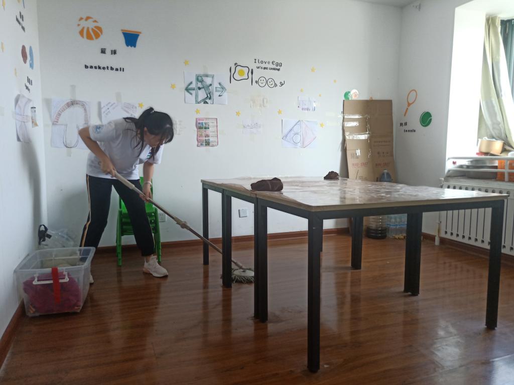 上午,志愿者们如约来到康复中心,康复中心的老师们带志愿者们参观了康复中心的内部设备,并分配了任务。此次任务就是协助老师打扫孩子们住宿的地方。分工结束,志愿者们便开始打扫卫生、清理垃圾。经过志愿者们忙碌的打扫,宿舍变得井然有序。所有分配的任务都完成以后,志愿者们去参观了孩子们的课堂,并和孩子们一起唱歌、做游戏。屋子里不时传出阵阵笑声,气氛融洽。志愿者们还陪同孩子们一起看了动画片,孩子们非常高兴。志愿者圆满地结束了本次志愿服务,康复中心的老师们纷纷表示感谢。