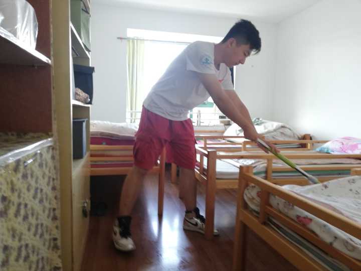上午八点半,志愿者们来到了孩子们的宿舍。宿舍里有两位小朋友没有回家,他们看到哥哥姐姐们的到来非常开心,拉着志愿者们一起看电视。看到孩子们开心的跳舞,志愿者们非常欣慰。之后,志愿者们开始打扫卫生,叠床铺、拖地,希望孩子们在这样的环境中越变越好。最后,志愿者们合影留念,与老师孩子们道别后踏上了回校的路程。