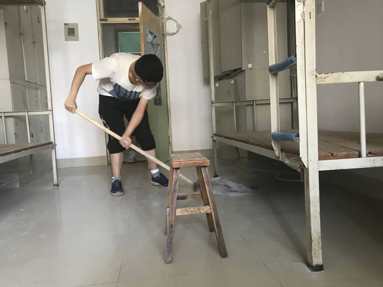下午两点,按照事先的安排与分工,所有同学带上拖把、扫把、抹布等清洁工具来到了新生宿舍。宿舍楼里,随处可见大家忙碌的身影,大家不怕脏不嫌累,通力协作,擦拭桌椅、去除污渍、清洁地板,不留下任何一个死角。之后,同学们将草榴社区