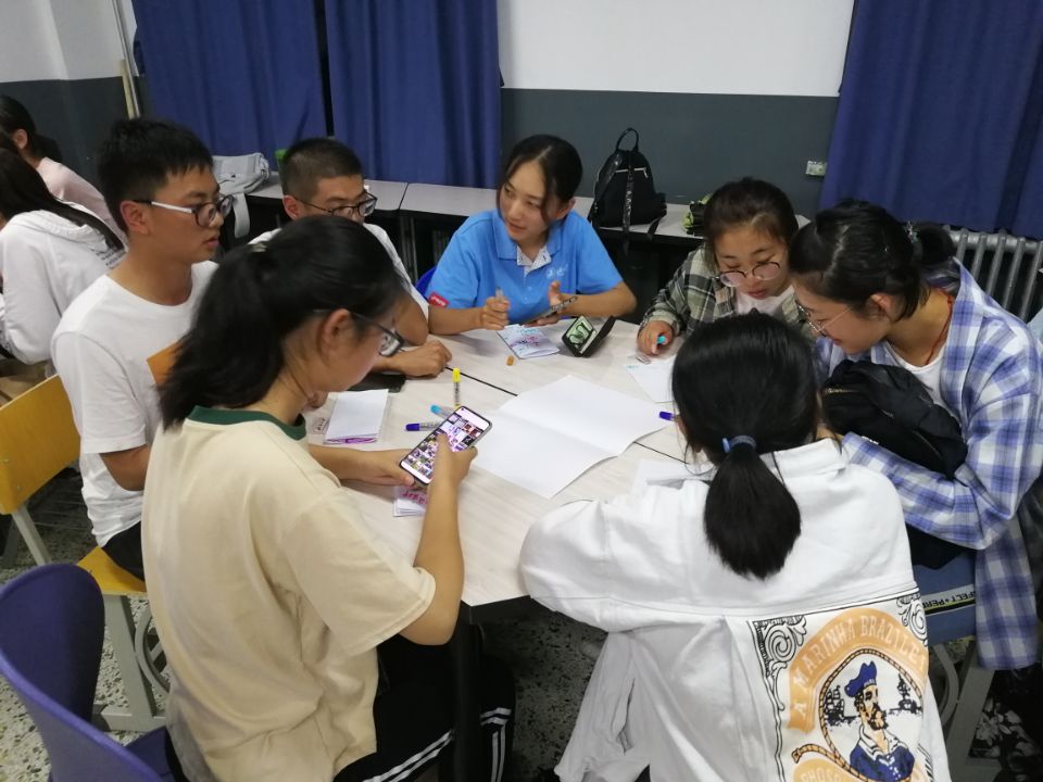 活动共分为五个阶段:“用画笔画出心中的济大”、“疯狂猜词语”、“个性席签”、“奇思妙想职业发布会”、“我的未来我做主”。活动伊始,主持人致开场词后,给同学们分好小组,发下纸张和彩笔进行“用画笔画出心中的济大”,同学们分工协作、积极投入、用心绘画,积极走上讲台与同学分享自己的作品。随后是“个性席签”,每个人将自己的代表词写在纸上,让大家能够更快更精准的了解自己。之后进行的游戏是“疯狂猜成语”,同学们分好小组,每个小组依次到讲台进行游戏,游戏过程中同学们配合默契,体会到了团队合作的乐趣。活动最后,主持人给每个人发下一张纸,同学们认真思考,将自己的大学目标、大学生涯的规划和如何实现目标写在纸上,给自己定下奋斗的目标,找到未来的努力方向。