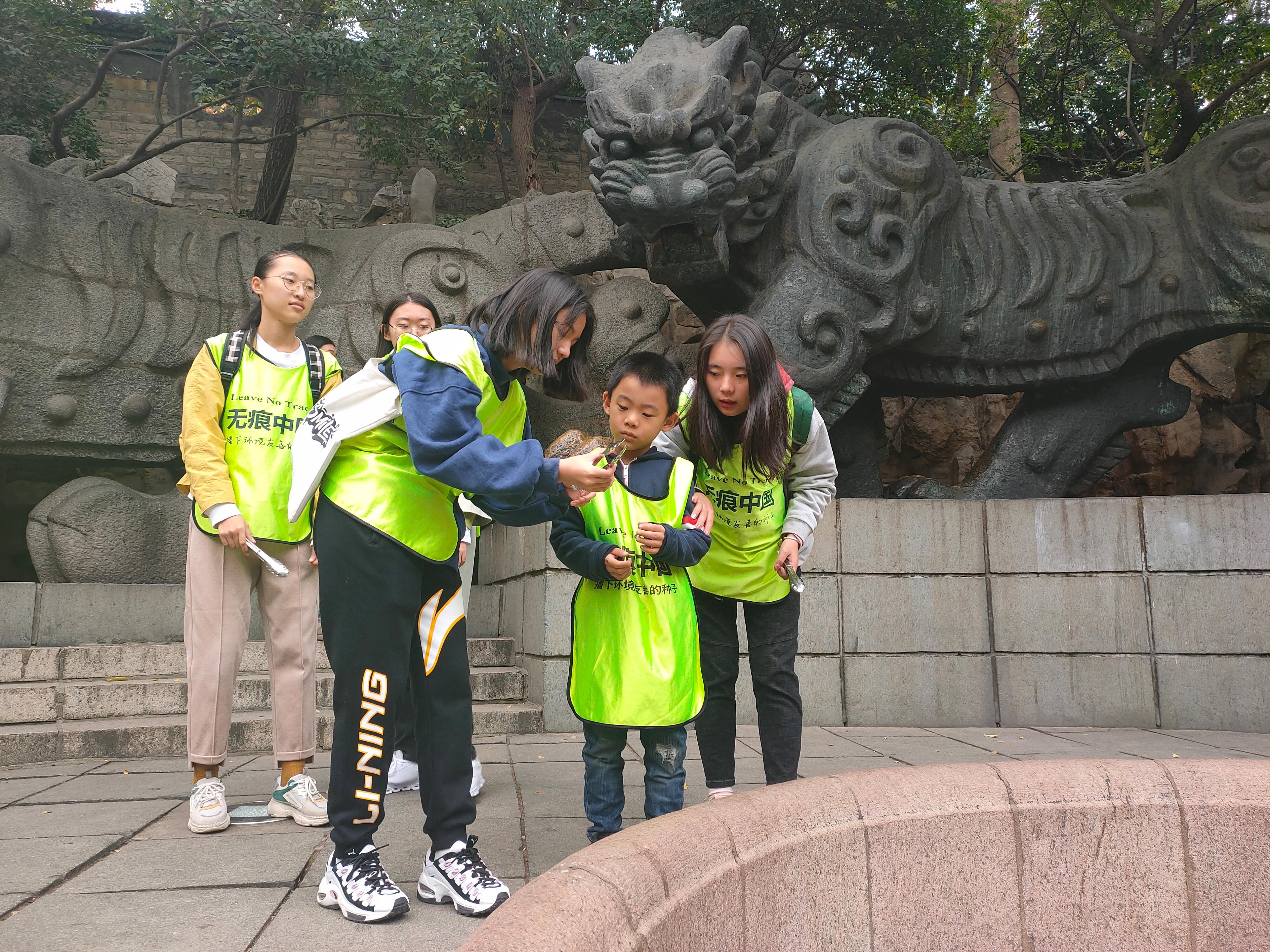 活动伊始,志愿者们给每一位小朋友分发了无痕工具——垃圾夹,宣传横幅以及带有“无痕中国”字样的马甲。随后,志愿者带领孩子及家长们来到了第一个目的地,太阳花老师向大家介绍了济南市常见的鸟类的习性及其生理特征。紧接着,大家来到了第二个目的地,在这里,小朋友们竞相猜测铜像人物的年代,最终楸老师向大家公布了最终的答案并向大家介绍了有关宋代的知识。第三个目的地接踵而来,在这里,芒果老师向大家介绍了黑虎泉包含的泉水以及泉水形成的原因。通过三个老师的讲解,孩子及家长们纷纷表示收获颇丰。活动结束后,志愿者们交流了活动感悟并作出了总结。最后,所有志愿者合影留念,本次活动圆满结束。