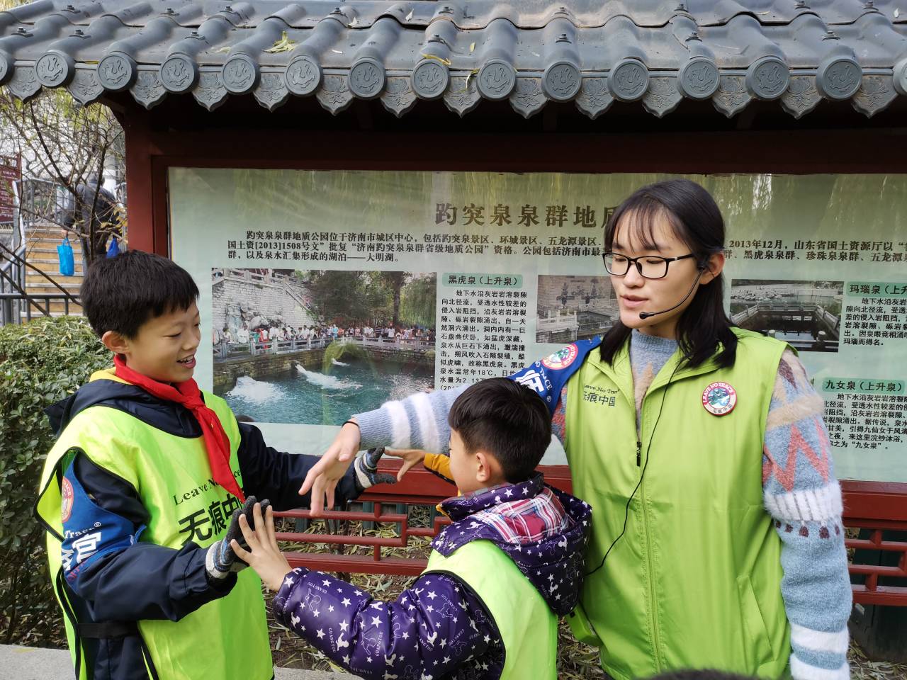 在此次活动中,青年协会志愿者们教给孩子们环保观念,给孩子们传播正能量。无痕指导员向孩子们讲解此次活动的主要内容和无痕手势,特别强调了安全问题。志愿者带领孩子们弯腰捡垃圾,他们每一次弯腰、捡烟头、放进垃圾箱的过程,都是对无痕的诠释:如果人人都能弯腰捡垃圾,那么我们离无痕社会就更近了一步。他们的行动感染了许多周围的人,使环保理念深入人心。随后讲解员给孩子们介绍济南市常见的鸟类的习性和生理特征,向孩子们宣传爱护小动物的观念。之后他们还讲述了碧筒饮的故事,表述了荷花在济南人的生活中占有重要位置。最后讲解员介绍了济南的地质特点。活动结束后,志愿者们交流了活动的感想并对这次活动做出了反思,纷纷表示自己在这次活动中不仅收获了做志愿的快乐,还增长了知识。