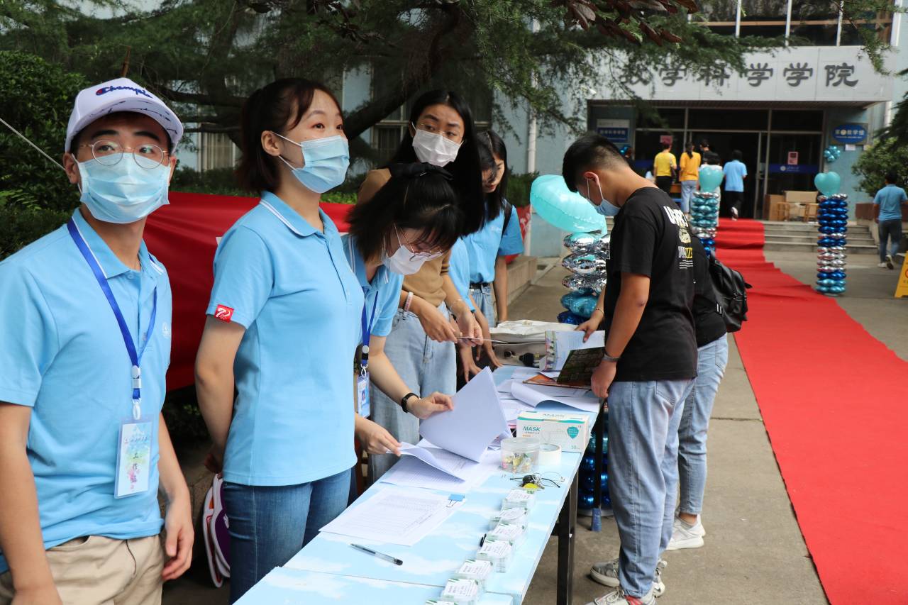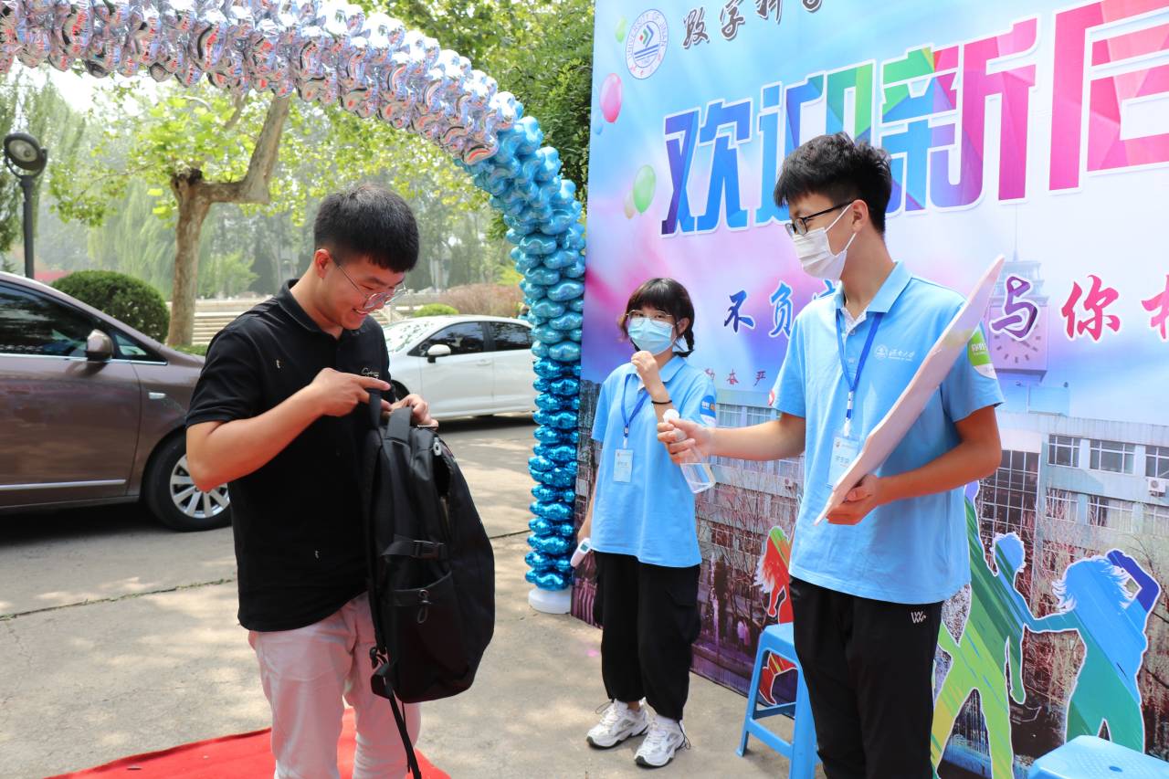 团委书记赵华磊,同时担任此次2020年的辅导员,询问新生和家长,并给予了美好的祝福。新生和家长一下车,众多的迎新志愿者马上微笑着迎上去:“你好”,“欢迎来到学校”。这样亲切的问候,让新生感受到了草榴社区