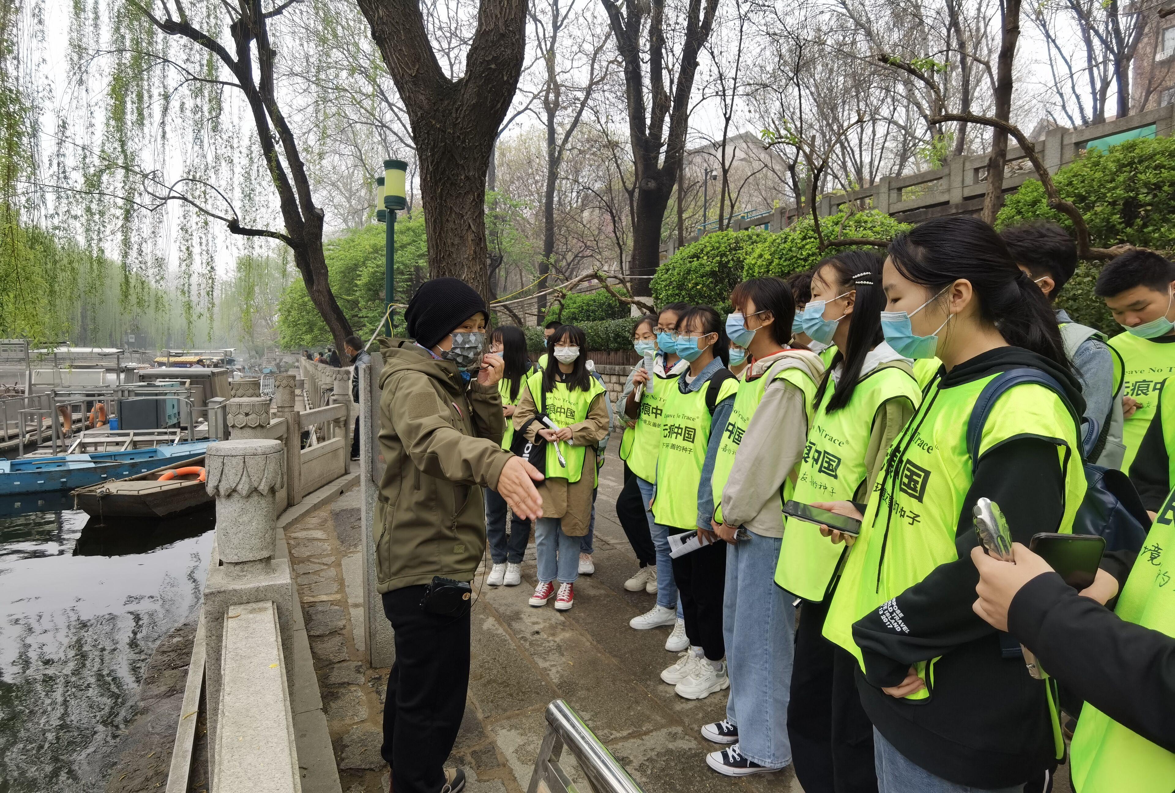 青年志愿者协会于3月27日在济南市黑虎泉景区组织了“无痕”培训活动。同学们积极参与,认真听讲师讲解。