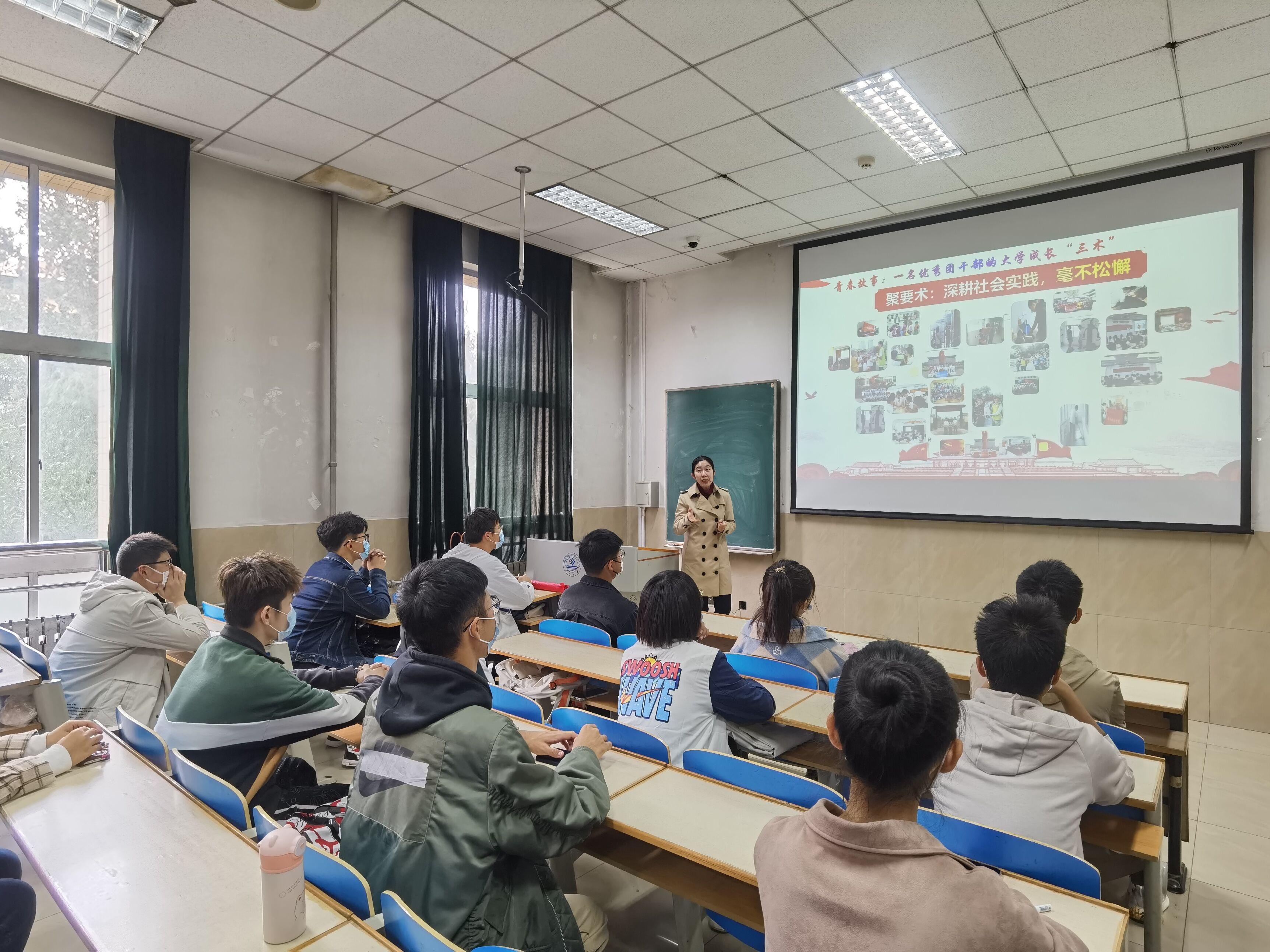 为同学们搭建的平台,发挥自身优势,全面发展。做一个有坚定理想、有实践精神、有学习能力、有创新意识的新时代青年。此外,赵华磊老师建议团干部应积极参与各类实践活动与科创赛事,深入比赛当中,不断积累经验,提升自己的综合能力。在团干部工作方面,赵华磊老师强调打铁还需自身硬,作为团干部更应有“等不起的责任感”和“慢不得的危机感”开展团支部工作,更应找准自己的定位,用专注的态度服务集体,以专业的水平做好工作。