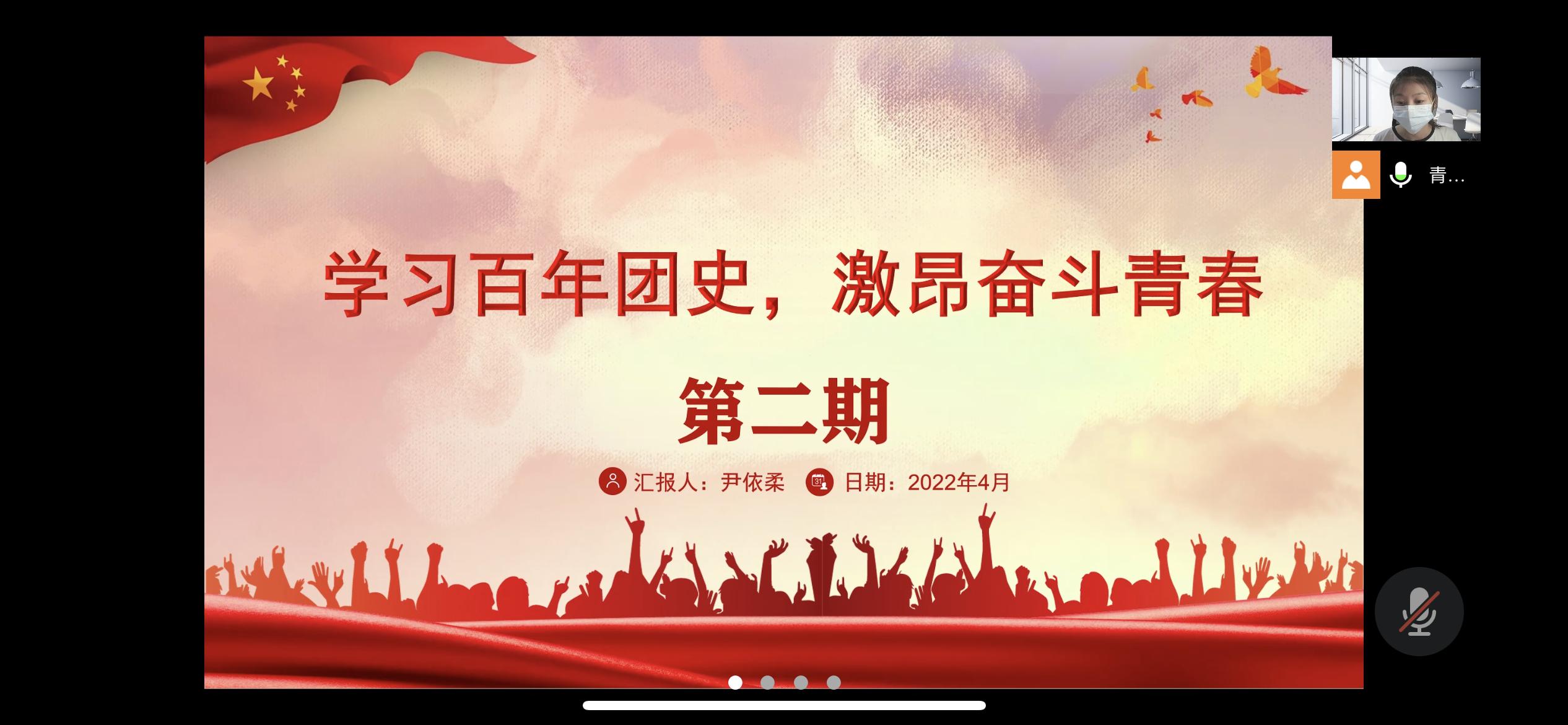 于2022年4月26日19:30线上开展“学习百年团史,激昂奋斗青春”主题团日活动。